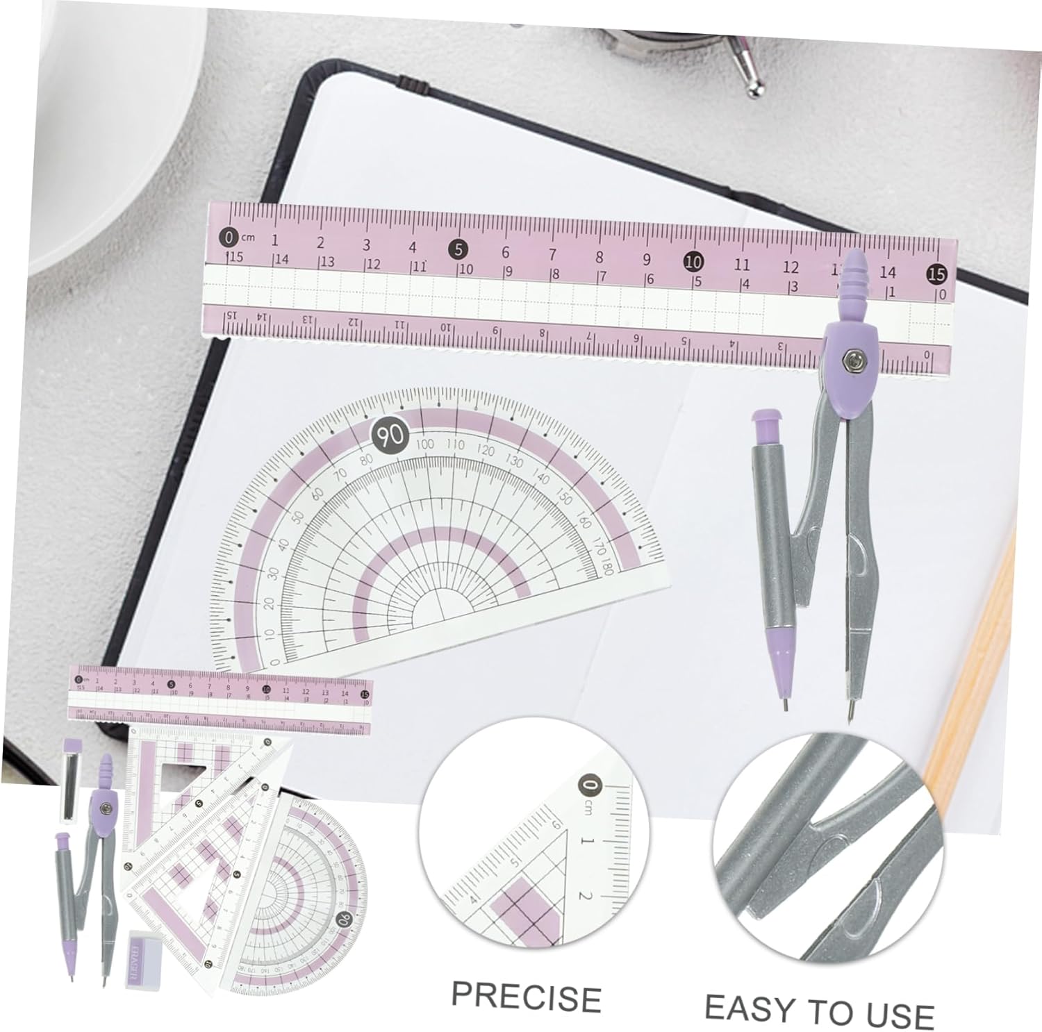 Goniometro per geometria scolastica: è uno strumento di misurazione utile per artisti, designer, architetti, ingegneri, studenti, kit righello multifunzionale Goniometro: è molto comodo per l'ingegneria e la meccanica, ed è anche molto adatto per gli studenti che vogliono dipingere, goniometro per la geometria Righello triangolare: comodo per la misurazione, portatile da usare e robusto per studenti, insegnanti e pittori, strumento di misurazione Kit righello triangolare: può essere utilizzato nel disegno, nel taglio dritto, nella progettazione grafica, nell'insegnamento, nell'ingegneria e in altri campi, compasso goniometro triangolo tavola Compasso e goniometro: linee morbide e disegni precisi, ti offriranno anche una buona esperienza di utilizzo, forniture per ufficio