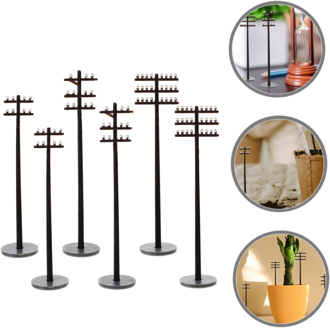 Pali del telegrafo fai da te: i piccoli pali del telegrafo sono adatti agli amanti dei micro paesaggi, possono decorare loro micro paesaggio, modelli di pali del telegrafo finti Del telegrafo in miniatura: può essere e buona scelta regalo per i tuoi e familiari, piacerà loro molto, modelli di pali del telegrafo in plastica Accessori per modellismo ferroviario: dimensioni compatte li rendono adatti all'uso sul tavolo da sabbia, aggiungono calore e atmosfera alla costruzione del tavolo da sabbia, scenari per modellismo ferroviario Modelli di pali del telegrafo di scenario: di utilizzo , buona decorazione, in particolare mini casa, decorazione del paesaggio del tavolo di sabbia, modello in miniatura di pali del telegrafo Decorazione ferroviaria: superficie liscia, aspetto semplice e vivido, decorativo, un delicato per la scena del tavolo di sabbia, modello di pali del telegrafo in miniatura