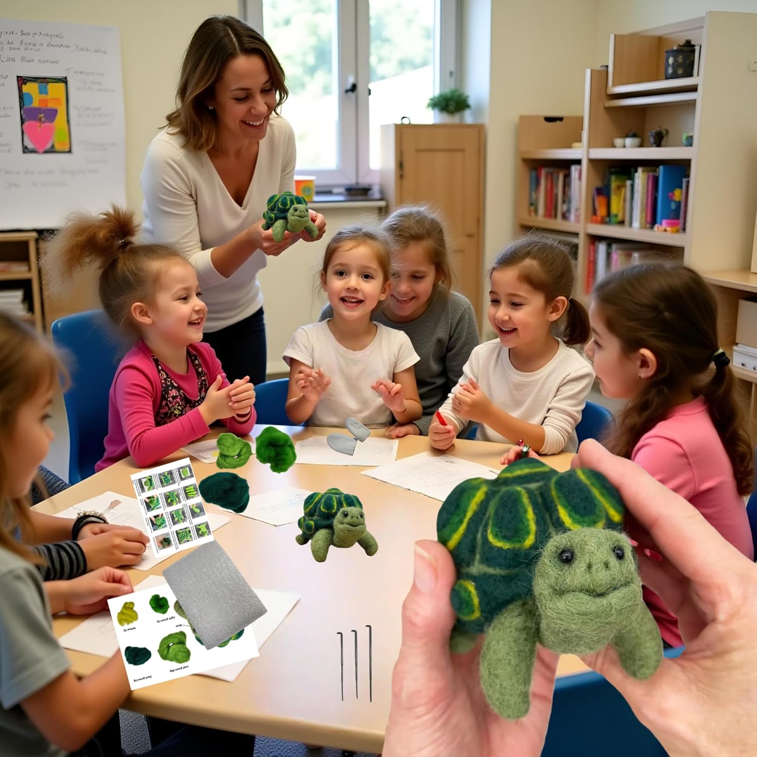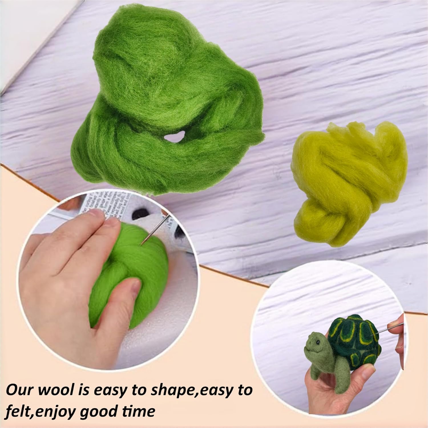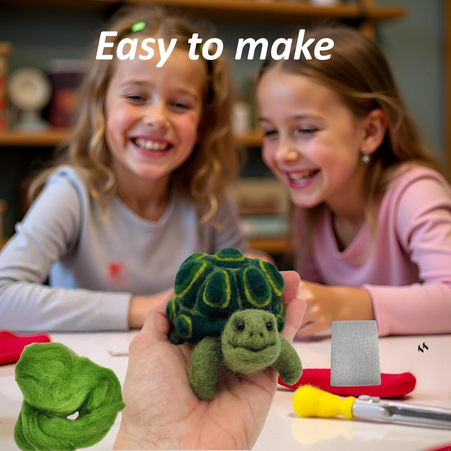 Kit completo per principianti: include 3 aghi per infeltrimento, 1 cuscinetto in schiuma, 1 paio di guanti per dita, 1 istruzioni (lingua italiana non garantita) e tutti i materiali essenziali per lanciare il tuo viaggio di infeltrimento ad ago Perfetto per principianti: i kit di avviamento per infeltrimento ad ago per tartaruga sono forniti in confezione di materiale, include vari strumenti e accessori necessari, è dotato di istruzioni in inglese, istruzioni passo passo su come creare ogni personaggio Materiale sicuro: il nostro kit di avviamento per infeltrimento ad ago è realizzato in ottima lana, morbido, inodore. L'artigianato finito sarà robusto, non si disperde facilmente Regalo per forniture artigianali: facile da fare il fai da te, i principianti possono seguire le istruzioni, utilizzando gli strumenti per infeltrire la lana per creare gli adorabili animali. Inoltre, è una bella scelta regalo per i tuoi amici, bambini, kit per principianti Bel kit per infeltrimento: questo kit per infeltrimento per tartarughe è perfetto per la famiglia, gli amici, è anche un'ottima opzione per chi ama il mestiere di agugliare o infeltrire. Infine, quando si utilizza l'ago per infeltrimento, infila la lana verticalmente lungo il cuscinetto in schiuma per evitare di ferire le dita