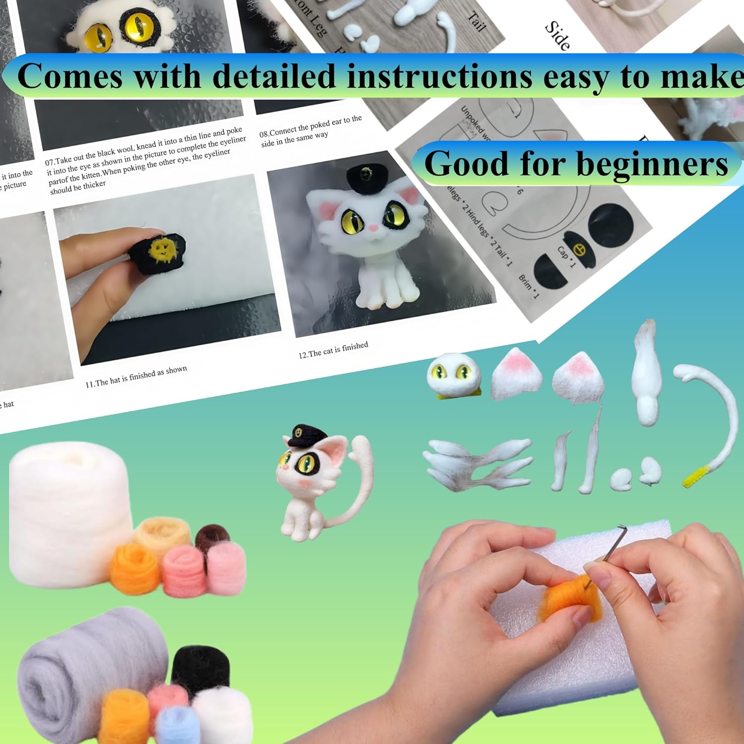 Kit completo per principianti: include 3 aghi per infeltrimento, 1 cuscinetto in schiuma, 1 istruzioni (lingua italiana non garantita) e tutti gli strumenti essenziali per iniziare il tuo viaggio di infeltrimento ad ago Materiali in lana di alta qualità: realizzato in morbida lana di fibra, garantendo un'esperienza di infeltrimento liscia senza grumi, rendendolo sicuro per gli utenti Istruzioni passo-passo: ogni kit di animali viene fornito con istruzioni in inglese facili da seguire, guidandoti attraverso il processo di creazione per un'esperienza di artigianato divertente e gratificante Idea regalo premurosa: questo adorabile set di infeltrimento è una scelta eccellente per compleanni o vacanze, sicuramente delizierà amici, bambini e appassionati di artigianato con aghi Attenzione: l'ago per infeltrimento è affilato, si prega di prestare attenzione e assicurarsi di proteggere la superficie di lavoro
