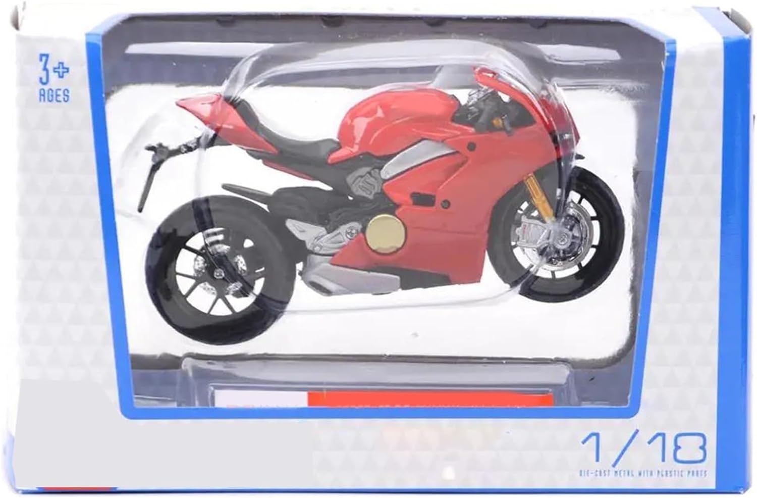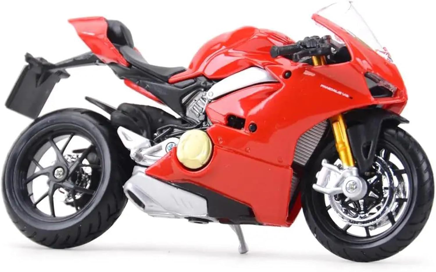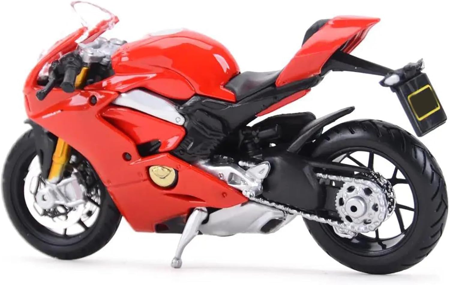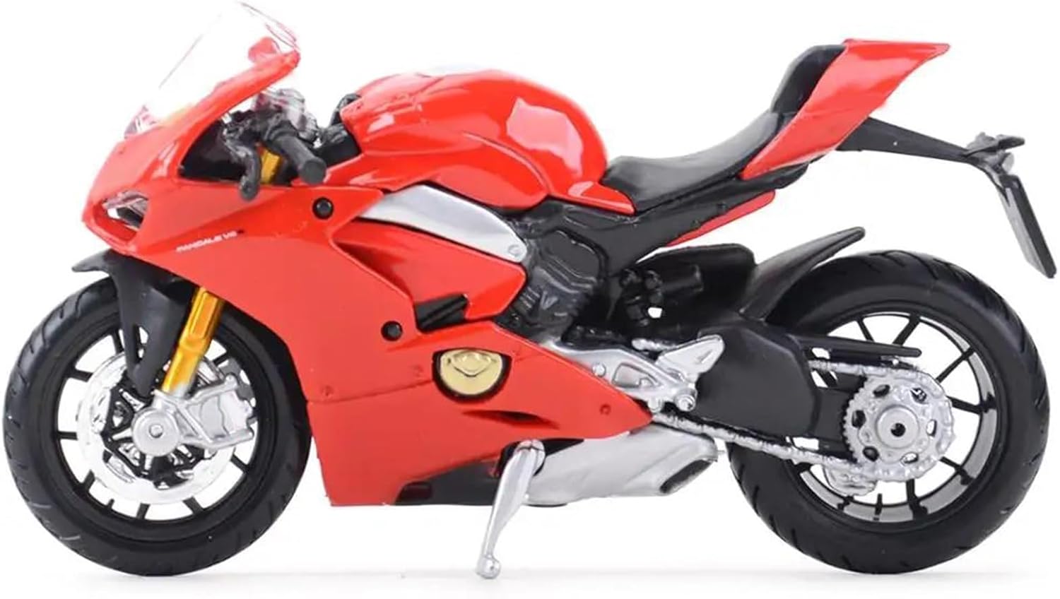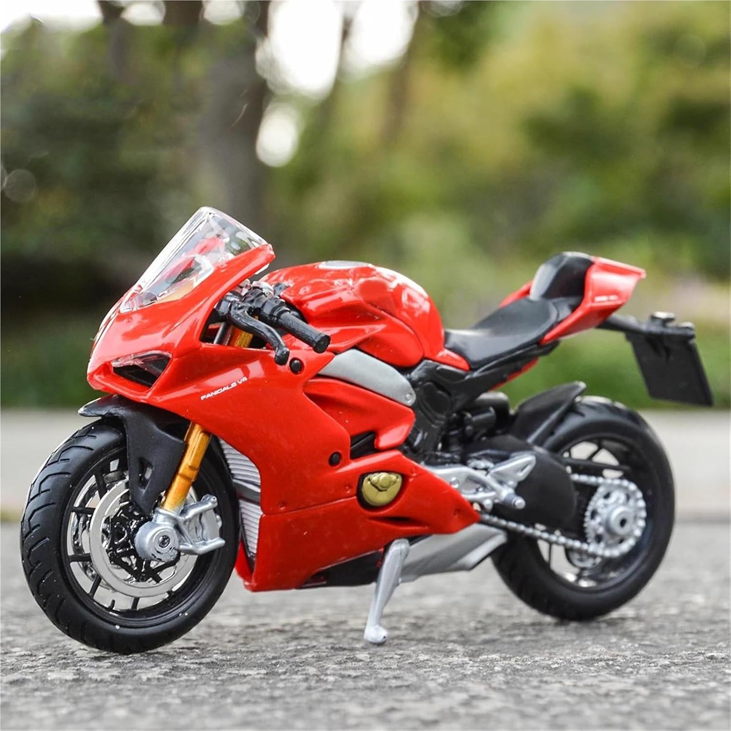 Modellini di moto giocattolo in scala 1:18 per Ducati-Panigale V4 Ruota anteriore e manubrio oscillanti da un lato all'altro, Cavalletto mobile, Ruote libere Modello di moto, una moto classica ed elegante, replicata con eccezionale accuratezza senza trascurare alcun dettaglio, dal motore distintivo, alla sella e alle curve eleganti, una replica assolutamente fedele. Realizzato in resistente lega di zinco, è resistente alle cadute e all'usura, garantendo la durevolezza del modello e la sua lunga conservazione. La finitura della vernice è uniformemente liscia, con colori vivaci e duraturi che resistono allo sbiadimento e alle scheggiature, garantendo un aspetto costantemente brillante.
