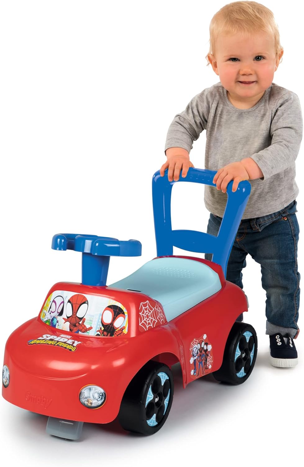 Scopri il mondo: a partire dai 10 mesi, il tuo bambino potrà partire per un viaggio alla scoperta con la sua nuova macchina cavalcabile nei colori di Spidey! Maneggevole e stabile: con la struttura ultra stabile ed ergonomica, la protezione della punta anteriore e posteriore e il volante funzionale, il piacere di guida sicuro è garantito! Girello: Quando il tuo bambino muove i primi passi, può tenersi allo schienale e spingere il suo veicolo. Scomparto portaoggetti: sotto il sedile ribaltabile c'è uno scomparto dove il tuo bambino può nascondere i suoi giocattoli e portarli ovunque! A partire da 10 mesi - Prodotto in Francia.
