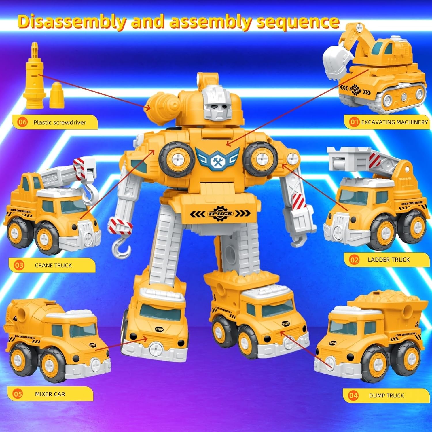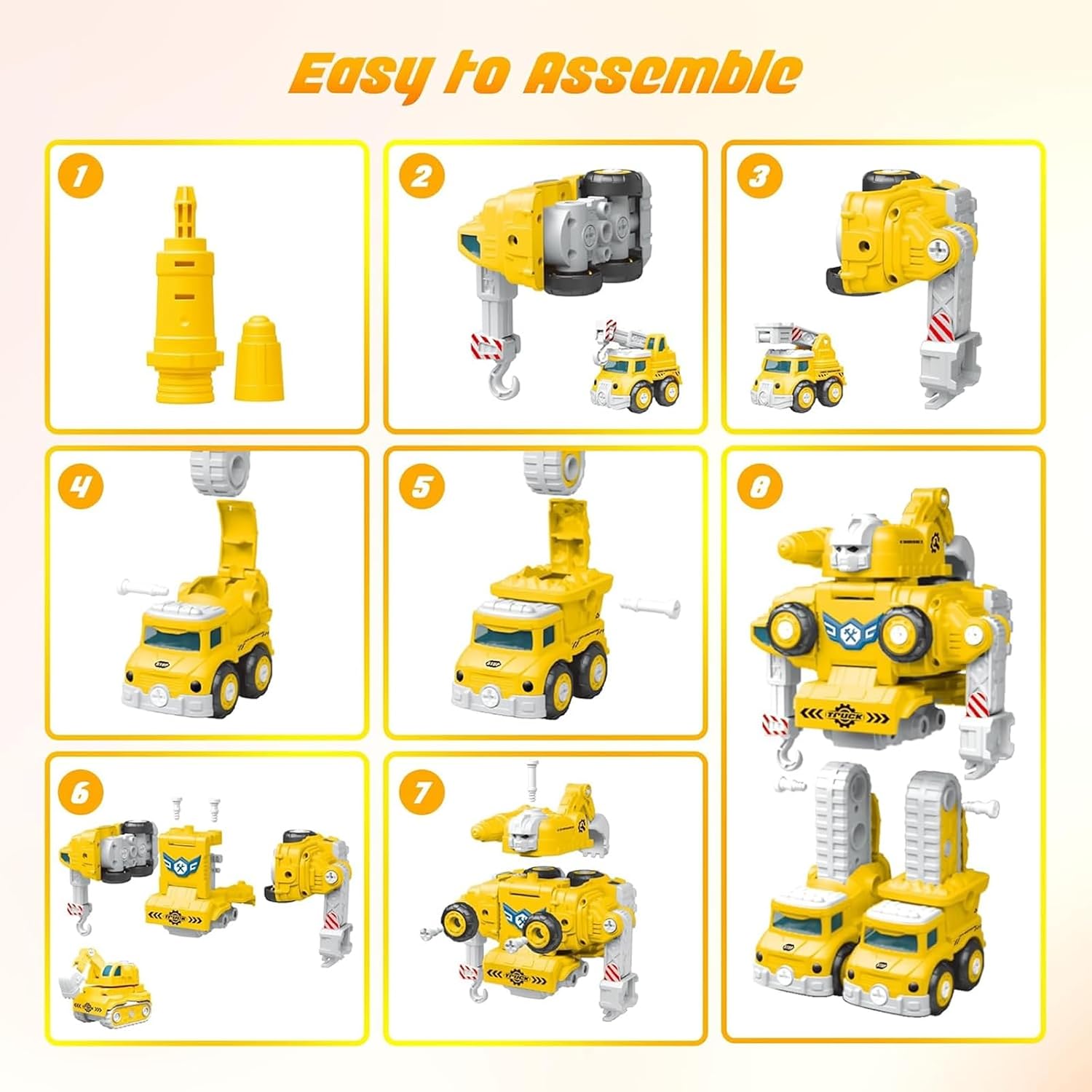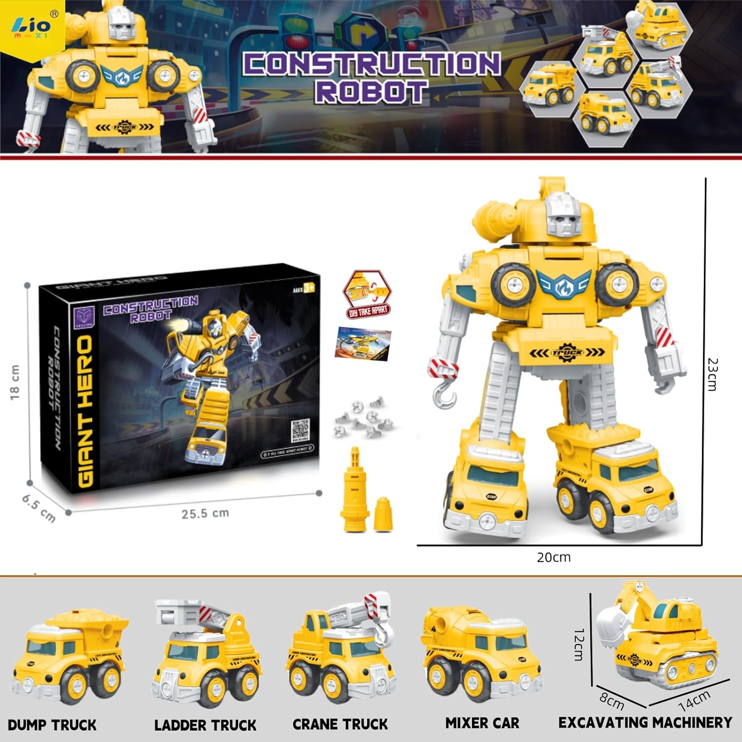 Trasformazione 5 in 1: robot trasformabile in veicolo da costruzione con parti intercambiabili e molteplici funzioni per un gioco creativo e dinamico Design educativo: stimola la coordinazione manuale, la logica e la creatività attraverso il montaggio e lo smontaggio delle parti Materiali durevoli: realizzati con materiali plastici durevoli e di alta qualità in colore giallo brillante con dettagli grigi e blu Età consigliata: perfetto per bambini dai 4 ai 7 anni, fornisce il giusto livello di sfida e divertimento Contenuto: include robot trasformabile, parti staccabili, istruzioni per la costruzione manuale e accessori