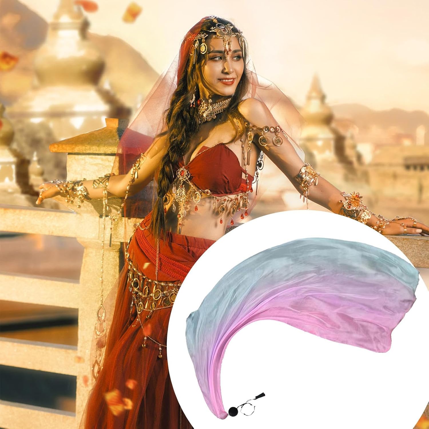 Splendido accessorio dalle prestazioni: migliora il tuo look con il nostro velo di seta da danza, disponibile in una varietà di motivi affascinanti e colori vivaci. Il suo aspetto accattivante e la consistenza fluida daranno alla tua danza un elemento unico e accattivante e ti faranno risaltare sul palco. Materiale resistente: questo velo di seta da danza è realizzato in chiffon eccellente e migliora le tue prestazioni. Il suo tessuto leggero garantisce movimenti rotatori senza interruzioni e movimenti fluidi, aggiungendo un tocco di eleganza alla tua danza. Diventa la star del palco con questo accessorio di alta qualità. Migliora la tua pratica di danza: realizzato in seta di alta qualità, questo velo galleggia e gira meglio di altri tessuti, migliorando così i tuoi movimenti e le tue espressioni. È anche un ottimo accessorio per danza, yoga e molto altro ancora, aggiungendo eleganza al tuo aspetto. È così fantastico sul palco che sarai al centro dell'attenzione. Design confortevole: combinato con una palla swing, il nostro Dance Silk Veil permette un facile controllo con una palla morbida che non affatica le dita. Il materiale in garza garantisce durata e una catena a sfere regolabile consente una regolazione individuale della configurazione. Applicazione adatta: con questo velo di seta danza, porti le tue performance di danza del ventre, palcoscenico e tribale al livello successivo di eleganza e versatilità. Si abbina perfettamente a qualsiasi abbigliamento e sciarpa e funge da ottimo strumento di danza per una serie di spettacoli.