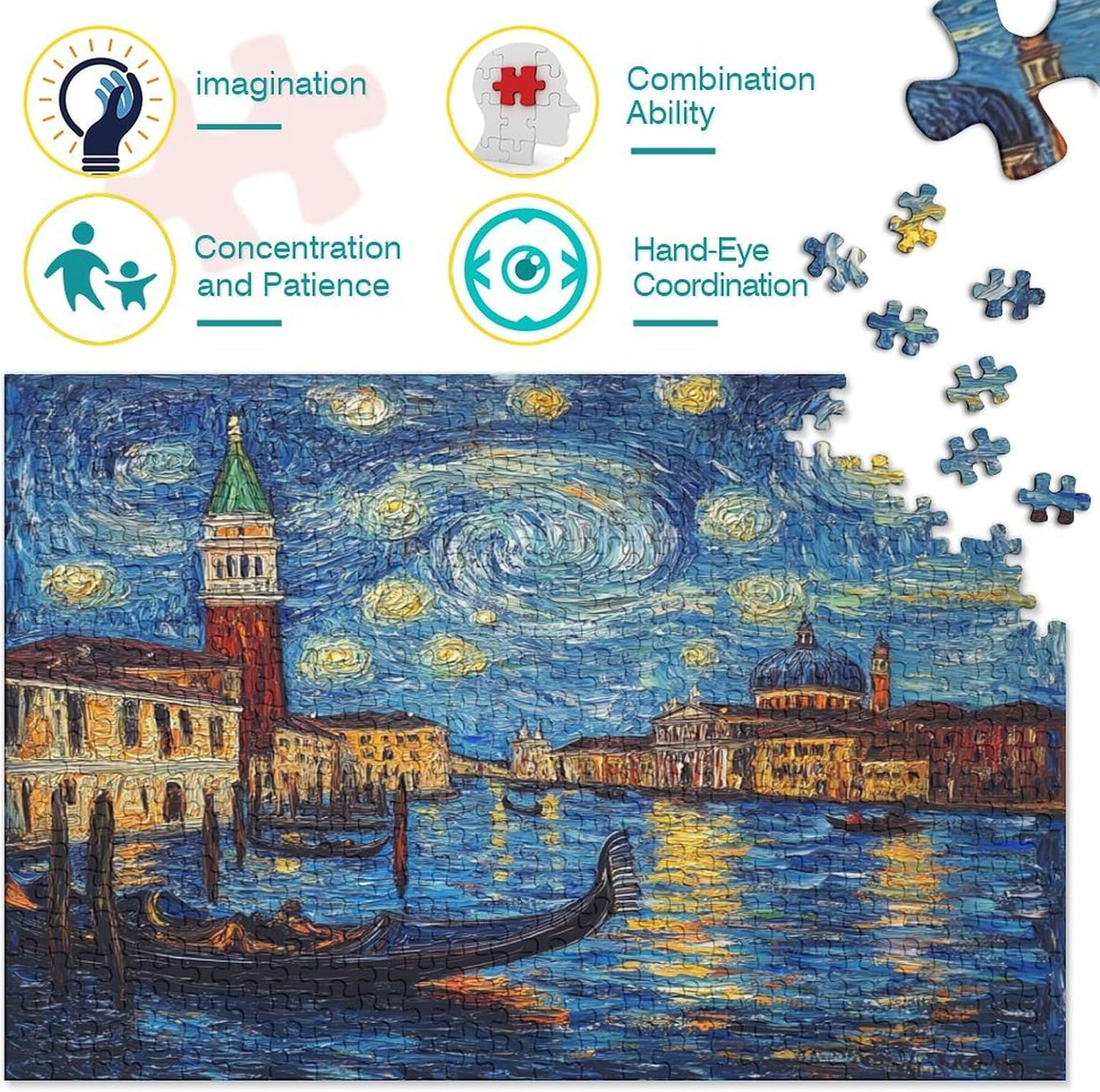 🌸GIOCHI PER ADULTI: una sfida emozionante da regalare a tutti li appassionati di puzzle e amanti dell'arte, ideale per uomo, donna o ragazzi; i puzzle aiutano a esercitare la memoria, migliorano la concentrazione e stimolano l'intuizione 🌸QUALITÀ PREMIUM: il massimo del divertimento con prodotti di altissima qualità in termini di materiali, motivi e design; realizzati in legno tagliati con fustelle fatte a mano, per un risultato impeccabile 🌸Buon regalo: il puzzle finito misura 38x26cm/1000pcs una volta completato. I migliori regali per ragazzi e ragazze dai 14 anni in su per compleanni o festività (Natale, Halloween, Ringraziamento, ecc.) 🌸Concediti una piacevole pausa relax! La nostra linea di puzzle da Venice Water City 1000 pezzi è il regalo perfetto per chi ama ritagliarsi un momento di svago e di relax mettendo alla prova le proprie abilità logiche e di concentrazione 🌸I nostri Puzzle ti offrono un'ampia scelta d'immagini capace di soddisfare i gusti di tutti: grazie alla qualità dei materiali riciclati, la robustezza e resistenza dei singoli pezzi insieme alla brillantezza dei colori, ti garantiamo un risultato impeccabile e privo di riflessi