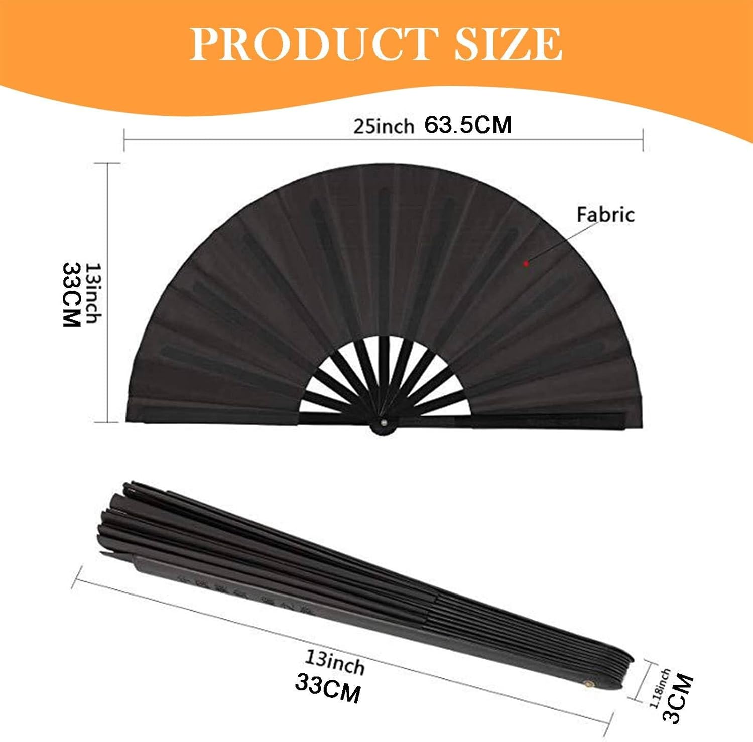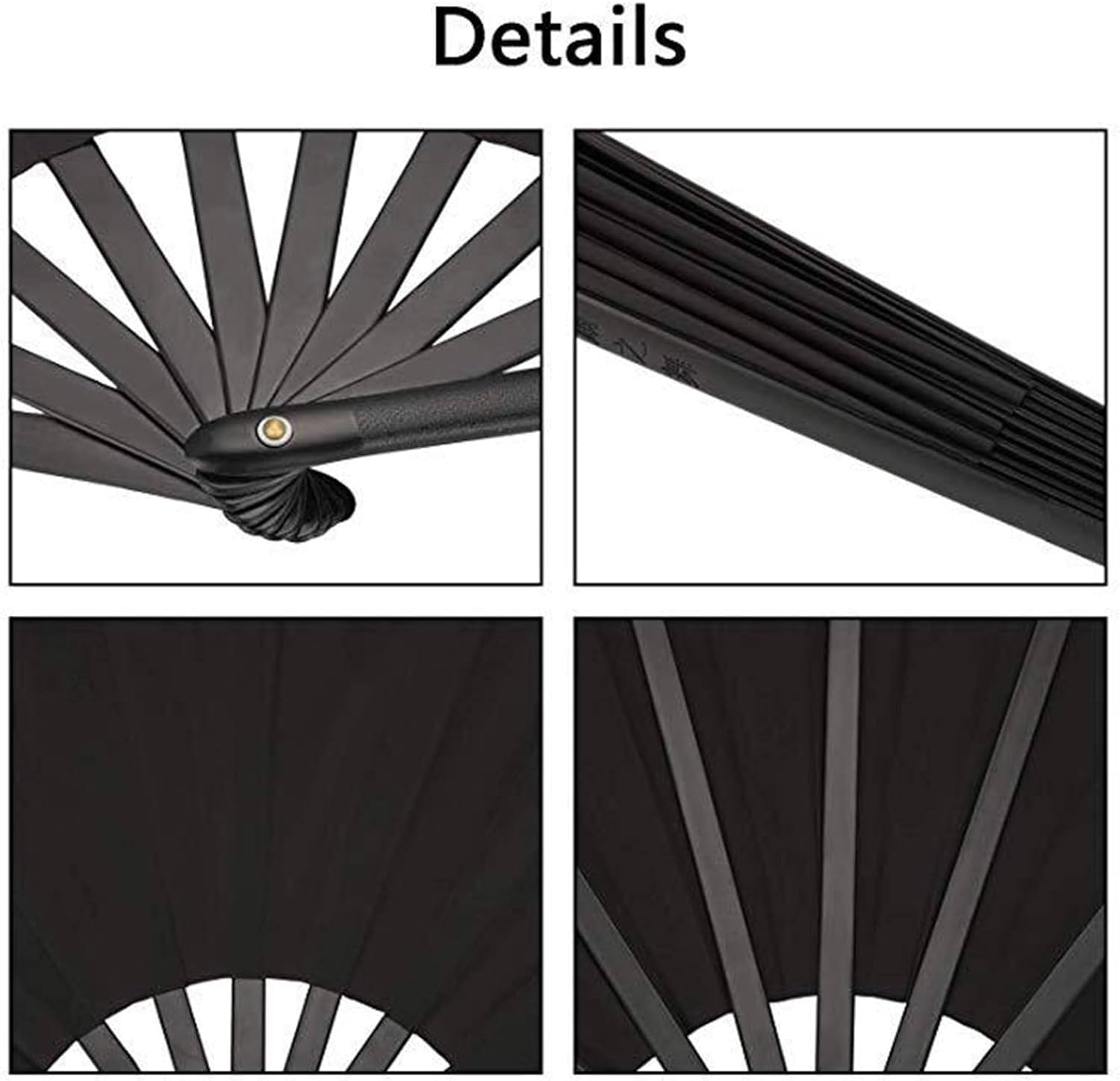 Costruzione: realizzata in materiale PVC con telaio robusto, pesa 0,2 kg per un uso prolungato delle prestazioni Portatile: il design compatto e pieghevole consente una facile conservazione e trasporto per eventi di danza e spettacoli Scopo: funziona sia come un oggetto di scena che un accessorio pratico con azione pieghevole liscia Opzioni di set: disponibile in set da 2 o 4 pezzi di grandi ventole pieghevoli nere per esibizioni di gruppo coordinate
