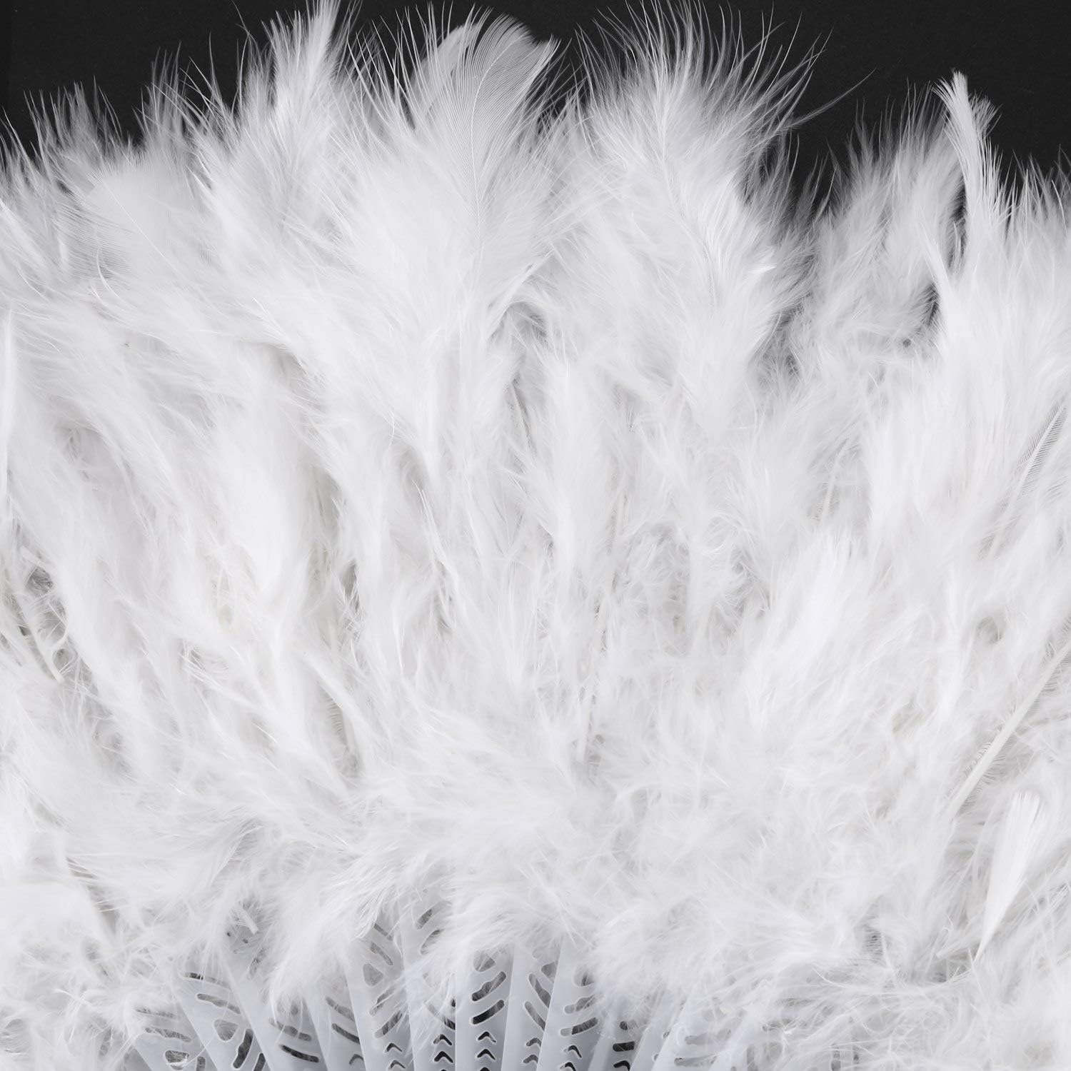 Realizzato in plastica superiore e 100% di zecca e di alta qualità Ottimo per ballare, decorazioni burlesque e costumi Questo ventaglio in presenta 28 costole con un bellissimo di piume Perfetto come regalo speciale o deco per amici e familiari