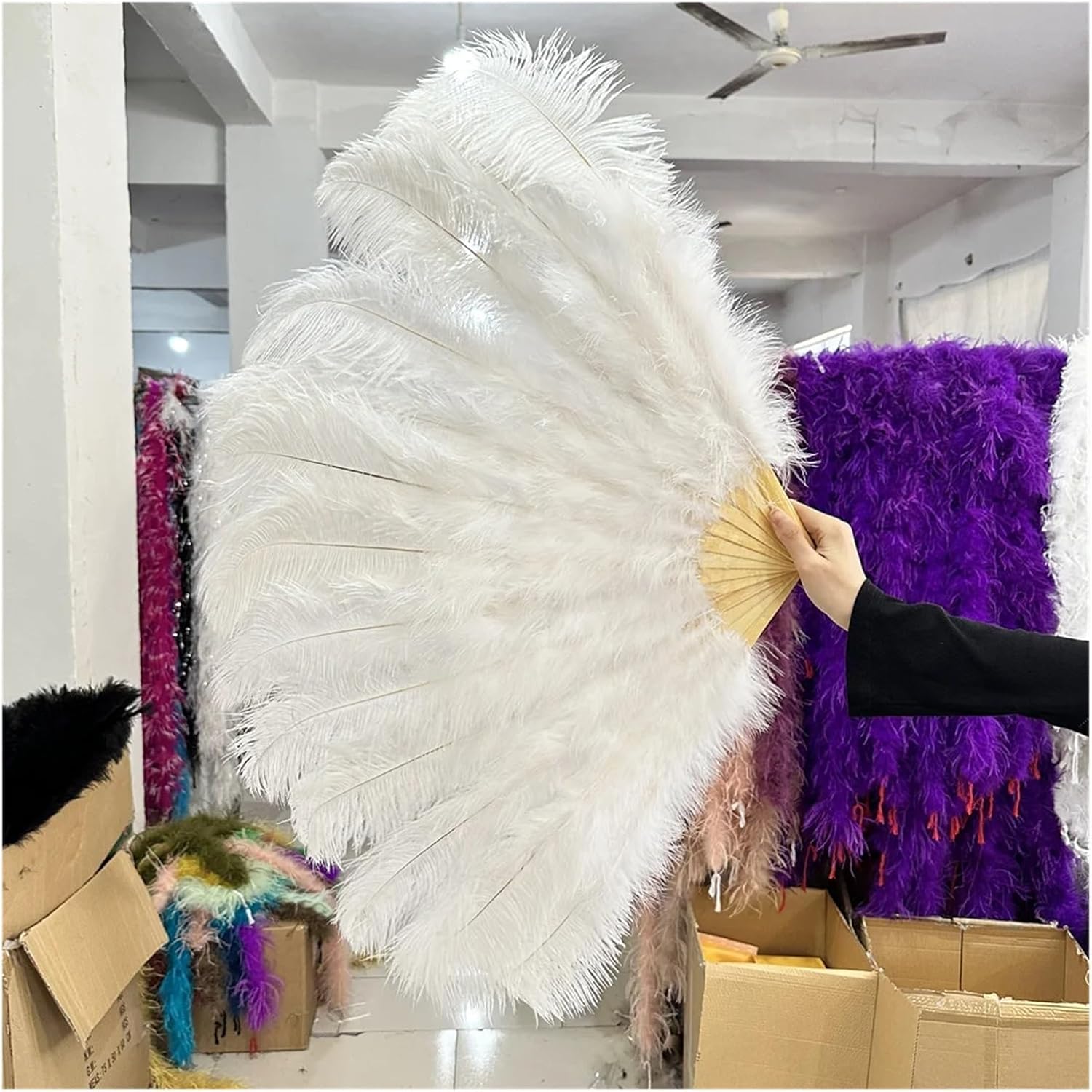 Design Elegante: Migliora la tua performance con un ventaglio in piume di struzzo squisito che aggiunge stile a qualsiasi performance di danza Colori Vivaci: Scegli tra una varietà di ventagli colorati, perfetti per performance teatrali e spettacoli di scena Utilizzo Versatile: Questo ventaglio burlesque è ideale per costumi, spettacoli di cabaret e tutti i tipi di performance teatrali Accessorio Portatile: Un ventaglio da tenere in mano, facile da trasportare, un must per showgirl e performer Tocco Decorativo: Questo ventaglio decorativo è perfetto per aggiungere eleganza al tuo costume o alla tua presenza sul palco