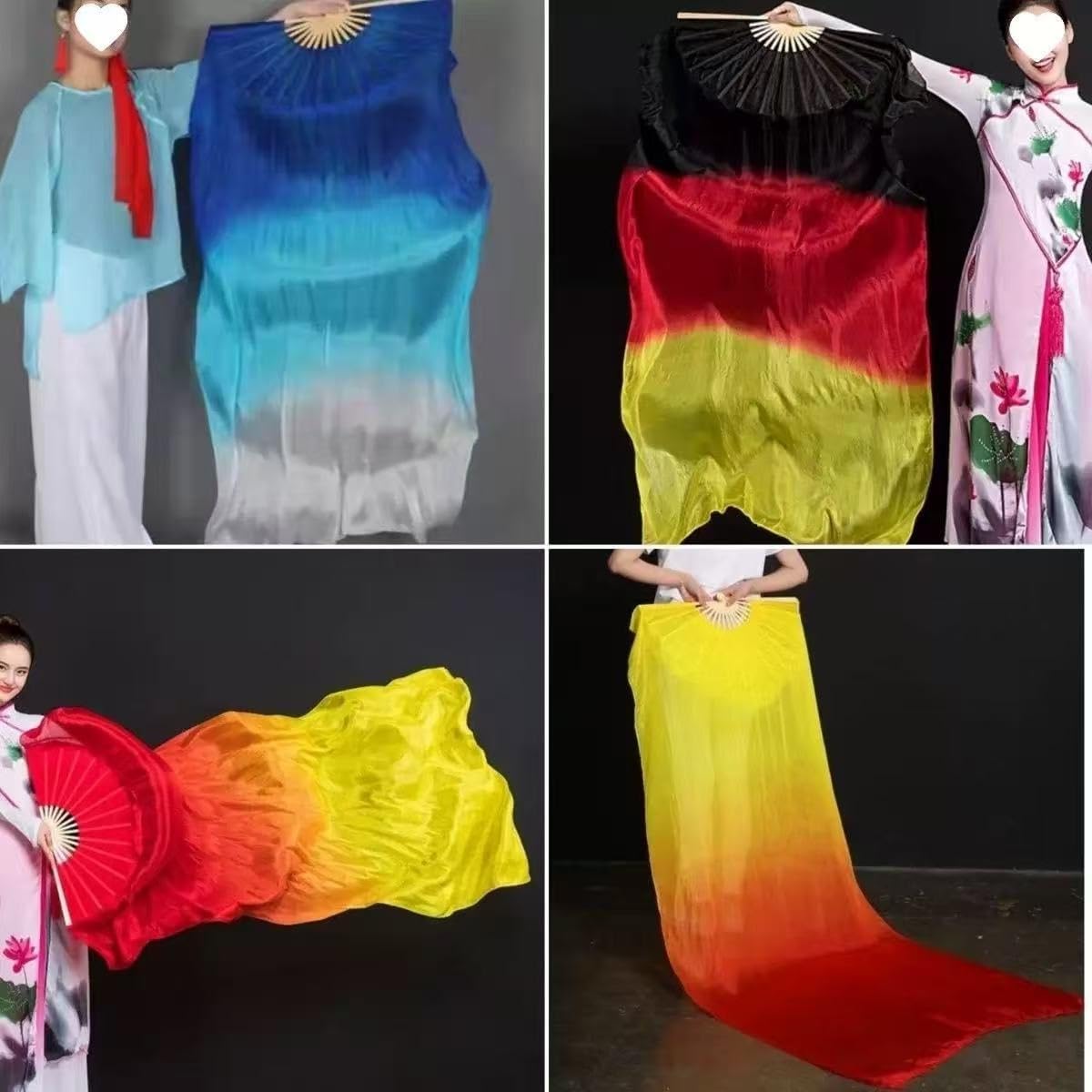 Quando balli con questo velo di seta, fluttua così bene che, quando ti giri e ti giri, i colori sono come un arcobaleno che fluttua nell'aria. Bellissimo aspetto e piacevole sensazione al tatto, il ventaglio flessibile è facile da aprire e piegare, come strumento di danza, può essere abbinato a qualsiasi vestito Piccolo e leggero, facile da mettere in borsa e trasportare Tessuto morbido e con colori sfumati Ampiamente utilizzato: i ventagli in seta for la danza del ventre sono adatti for la danza del ventre, la danza cinese, gli spettacoli di quyi, la danza moderna, la danza speciale, il balletto, gli spettacoli di gruppo, la danza latina, le squadre di ballo scolastiche, gli eventi scolastici, gli spettacoli nuziali, i palchi, le competizioni, la fotografia e le feste ecc.