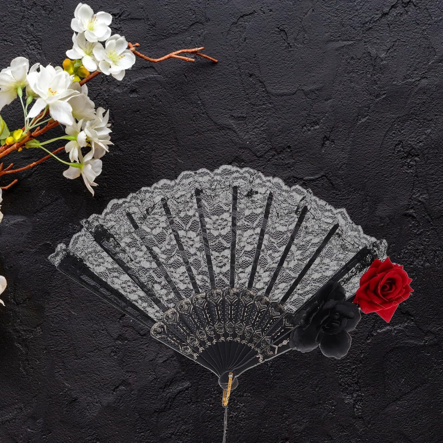 Mostra l'individualità: lo stile gotico distintivo di questo ventaglio ti consente di mostrare il tuo gusto e la tua personalità unici, distinguendoti dalla massa, ventagli da matrimonio, accessori vittoriani Pieghevole e portatile: progettato per la praticità, questo ventaglio può essere facilmente piegato e trasportato, rendendolo ideale per viaggi ed eventi, decorazioni vittoriane di halloween, ventaglio pieghevole Gotica: questo ventaglio da mano ha un' gotica, che lo rende un ottimo accessorio per coloro che apprezzano la moda oscura e sofisticata, ventagli da mano neri, ventagli da mano vintage Delicati abbellimenti in pizzo: il ventaglio presenta delicati abbellimenti in pizzo che aggiungono un tocco romantico e misterioso tuo outfit, ventagli da sposa con fiori in pizzo, ventaglio ricamato Versatile per varie occasioni: che tratti di un evento a tema vittoriano, di una festa di halloween o di un raduno di moda lolita, questo ventaglio adatta a qualsiasi outfit, ventaglio giapponese, ventaglio in pizzo nero