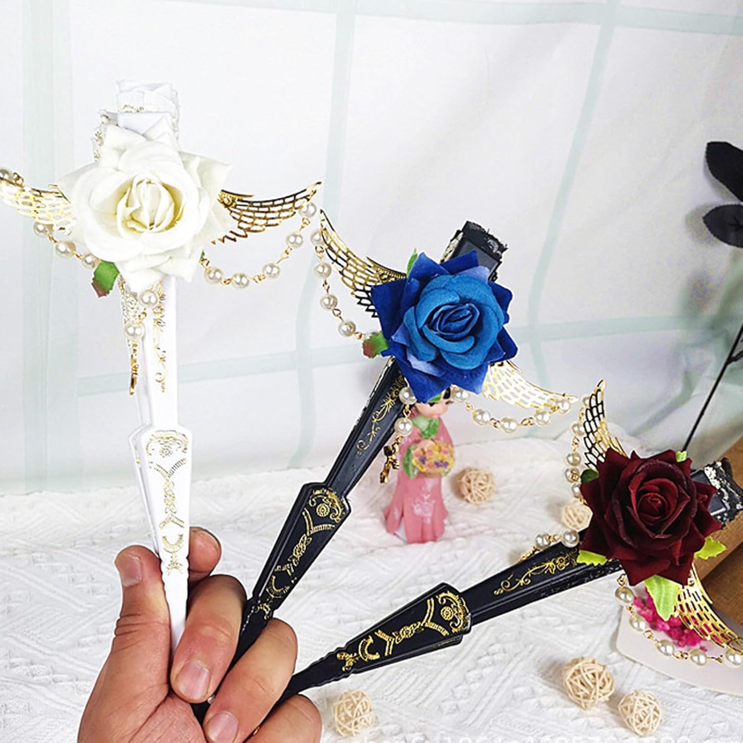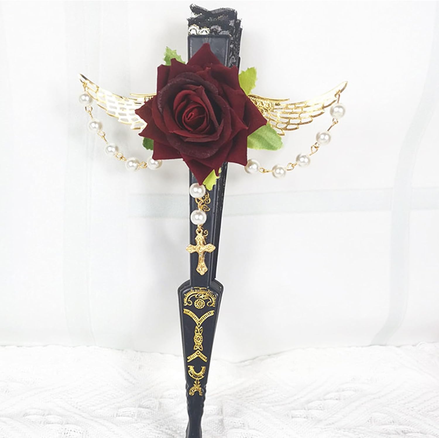 Molitple occasioni, il fan del vestito di Fancys è ideale per Halloween, feste speakeasys anni '20, cosplay di Capodanno, feste in maschera, feste di ballo, feste di tè, burlesque, spettacoli di varietà e qualsiasi altra occasione. Buone costruzioni, ventaglio palmare con ali di rosa, anelli in metallo. Facile da aprire e chiudere. Facile da trasportare, il ventilatore gotico lolitas è facile da piegare e trasportare. Meraviglioso, meraviglioso speciale per amici e familiari. Progettato, fiore di rosa ala 3D progettato, moda