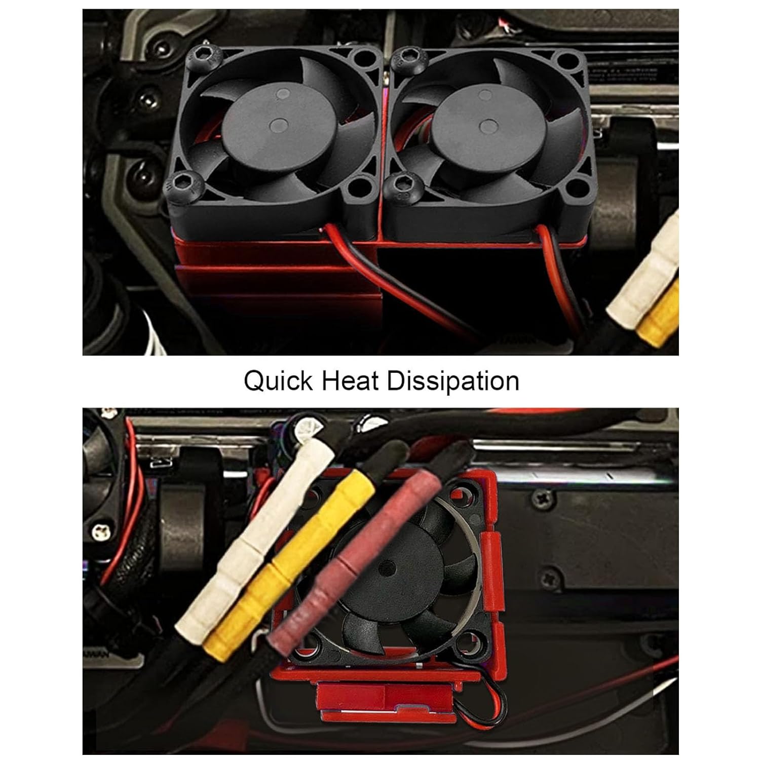 Ampia compatibilità: set di ventole di raffreddamento adatto per slash 4x4 VXL 1/10, per Rustler 4x4 VXL, per Stampede 4x4 VXL, per HOSS 4x4 VXL, per Velineon VXL - 3S (non adatto per 2WD). Operamento efficiente: il set di ventole di raffreddamento può mantenere il motore in funzione e il raffreddamento controllando il motore e può ridurre efficacemente la temperatura dell'ESC a lungo termine operativo per ottenere la massima potenza. Lungo duratura: la ventola di raffreddamento ESC è realizzata in lega di alluminio e plastica addominali, che possono resistere ad alta temperatura e hanno le caratteristiche della dissipazione del calore rapida. Garantisce prestazioni stabili e una durata di servizio più lunga. Forti prestazioni resistenti all'acqua: la ventola di raffreddamento ESC ha eccellenti prestazioni resistenti all'acqua e il grado resistente all'acqua è IP44. Quando l'auto passa attraverso aree in acque poco profonde durante la guida, non è necessario preoccuparsi che la ventola di raffreddamento venga danneggiata e può proteggere i suoi circuiti interni in ambienti difficili. Il pacchetto include: ventola di raffreddamento ESC e ventola di raffreddamento del motore Set di ventola doppia include 1 ventola di raffreddamento ESC, 1 ventola di raffreddamento del motore, 2 cavi di alimentazione, 1 cavo del connettore. Lascia che lo usi in modo sicuro.