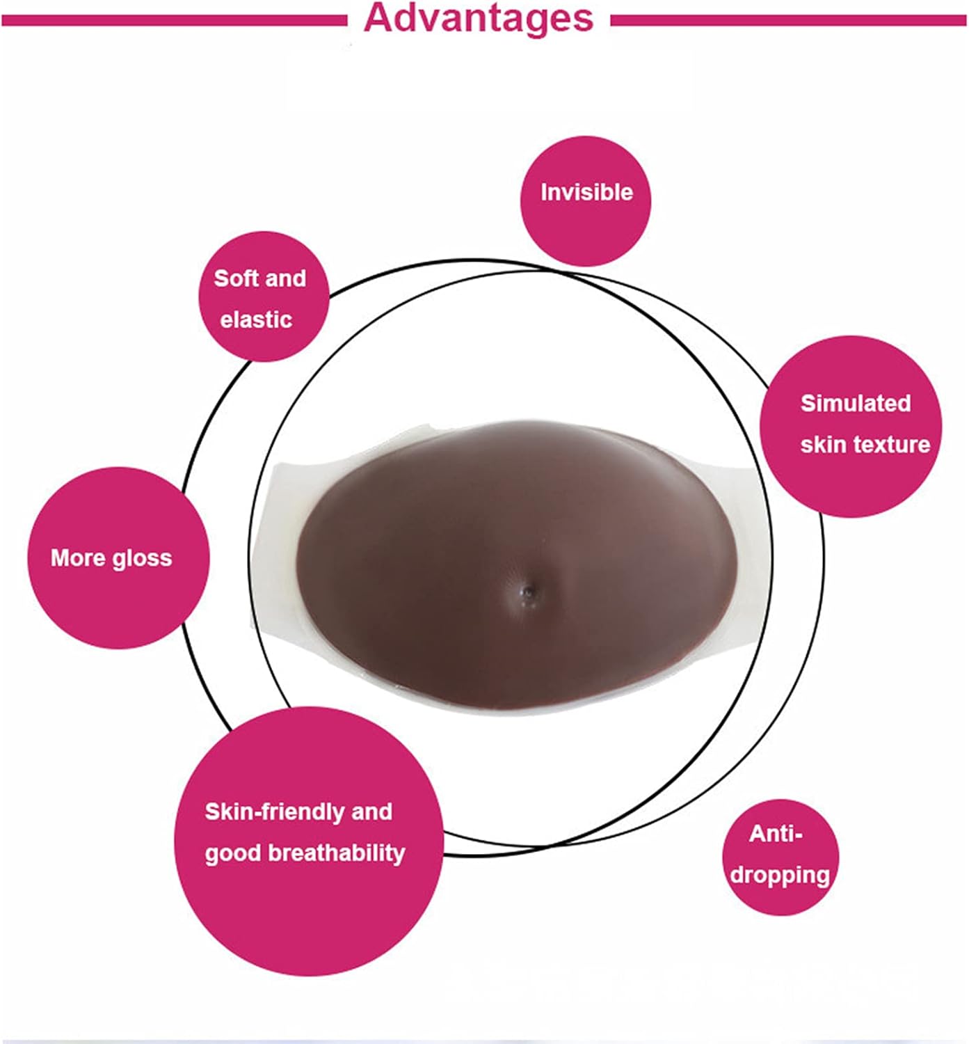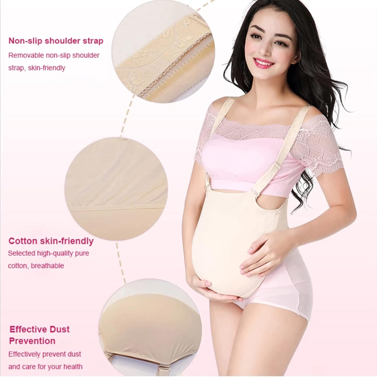 Trasformazione istantanea: questo prodotto simula la consistenza della pelle umana, offrendo una sensazione morbida ed elastica che ti permette di trasformarti istantaneamente in una "donna incinta" con un aspetto realistico. Sicuro e confortevole: realizzato in silicone inodore e atossico, questo finto ventre garantisce un comfort aderente senza effetti collaterali, fornendo un aspetto pesante ma morbido, aspetto e sensazione realistici. Design traspirante: il materiale in tessuto della borsa a pancia incinta è assorbente e traspirante, garantendo morbidezza e comfort durante l'uso. Il suo colore carne esalta il realismo dell'effetto pancia finta. Sicuro e versatile: dotato di spallacci per una vestibilità sicura, evitando scivolamenti. L'interfaccia trasparente ispessita è staccabile, offrendo versatilità, facilità di pulizia e compatibilità con vari spallacci. Ampia gamma di usi: perfetto per travestimenti, giochi di ruolo, oggetti di scena, simulazione di gravidanza, costumi cosplay e giocattoli di Halloween, per soddisfare una varietà di esigenze di intrattenimento e professionali.
