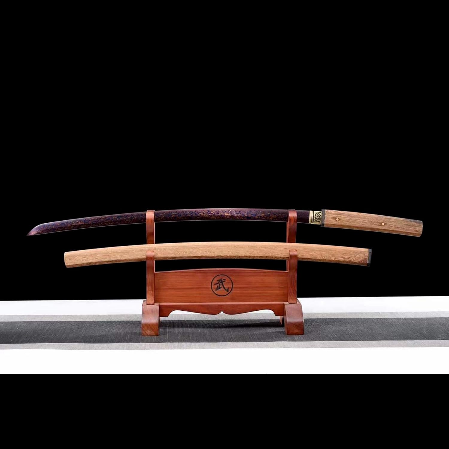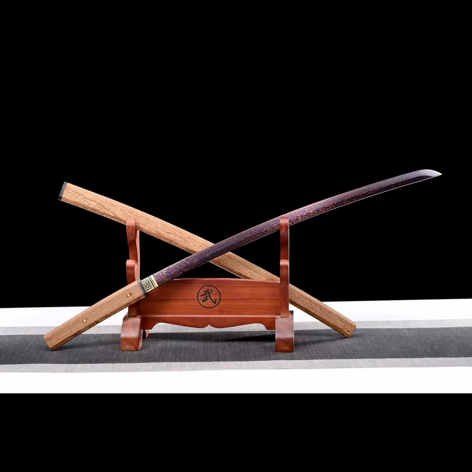 La lama è realizzata in acciaio di alta qualità con la tradizionale tecnologia forgiata a mano. Dopo essere stato piegato e forgiato molte volte, presenta un modello bellissimo e unico, che garantisce anche la perfetta combinazione di durezza e tenacità. La lunghezza totale è di 103 cm, la lunghezza della lama è di 71 cm, la lunghezza del manico è di 26 cm e la larghezza della lama è di 3,2 cm. Le proporzioni sono cruciali per la progettazione delle armi. Le proporzioni perfette non solo rendono la katana più bella, ma ne garantiscono anche la praticità e la funzionalità. Ogni katana porta con sé l'essenza dell'artigianato tradizionale. Dalla selezione del materiale alla forgiatura, dalla molatura alla tempra, ogni fase viene accuratamente lucidata dagli artigiani per garantire che ogni katana sia un'opera d'arte unica. Questa katana non è solo un'arma funzionale, ma anche una bellissima opera d'arte, perfetta da esporre. Il suo aspetto aerodinamico e la sua texture unica aggiungono un tocco di eleganza e raffinatezza alla tua casa o al tuo ufficio.
