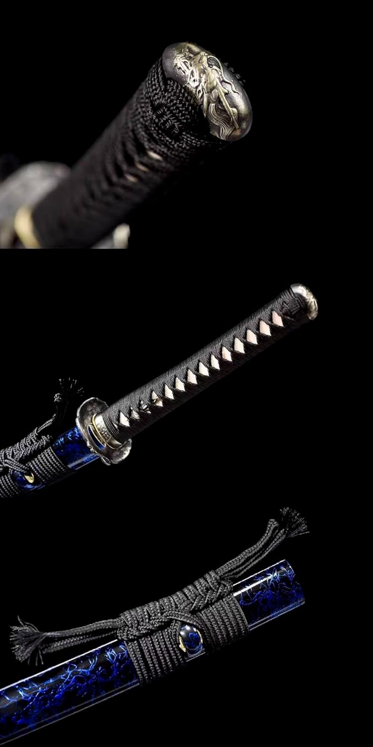 Ogni katana è un'opera d'arte unica. È la prima scelta per collezionisti e appassionati di arti marziali. La lama è realizzata in acciaio modellato di alta qualità ed è stata piegata e forgiata più volte per garantire la perfetta combinazione di durezza e tenacità. L'impugnatura è avvolta da una corda morbida che si adatta perfettamente al palmo della mano, è facile da impugnare e ha buone proprietà antiscivolo e resistenti all'usura, offrendoti il massimo comfort durante l'utilizzo. Lunghezza totale: 103 cm, lunghezza lama: 71 cm, lunghezza manico: 27 cm, larghezza lama: 3,2 cm, peso: 1,3 kg. Le proporzioni sono cruciali per la progettazione delle armi. Le proporzioni perfette non solo rendono la katana più bella, ma ne garantiscono anche la praticità e la funzionalità.