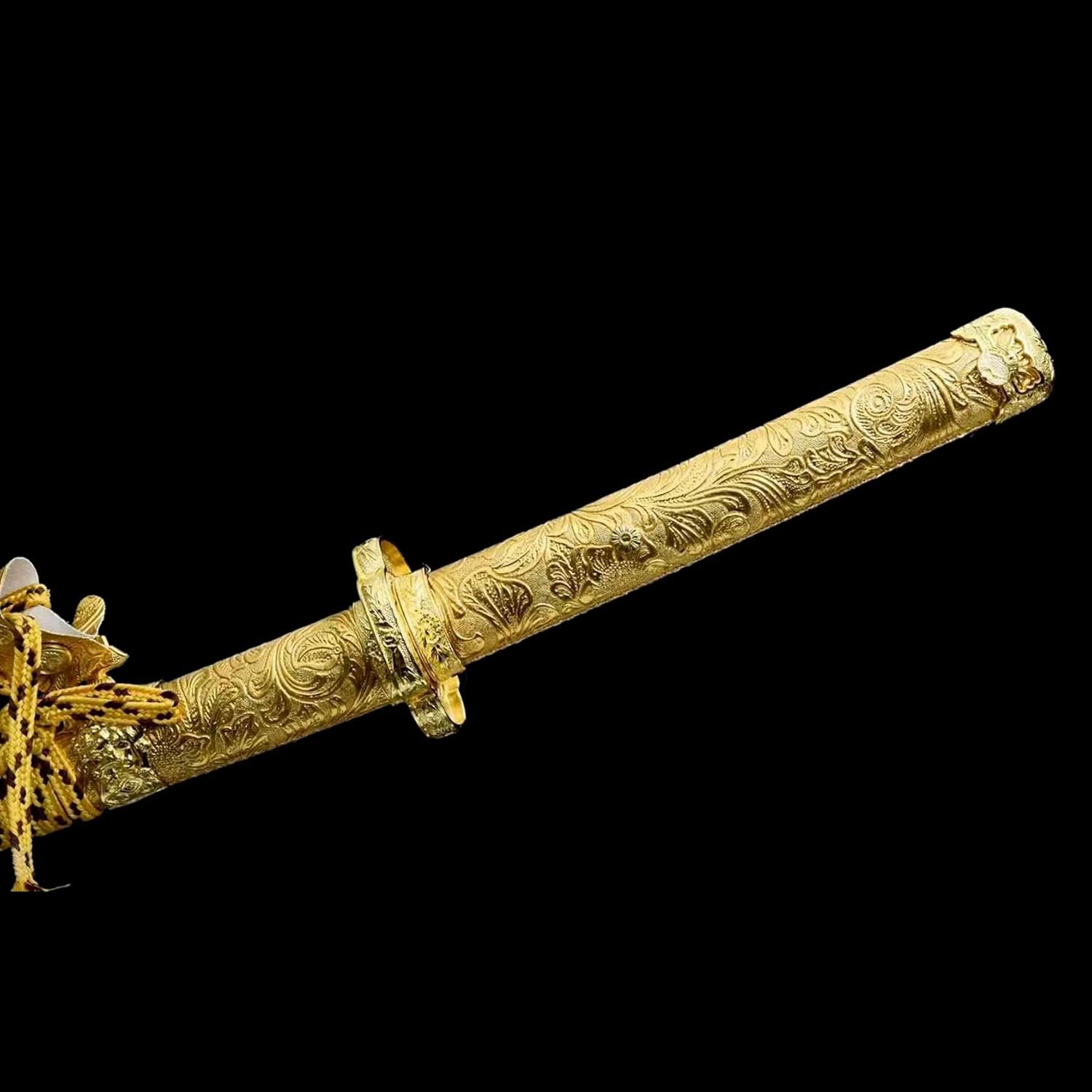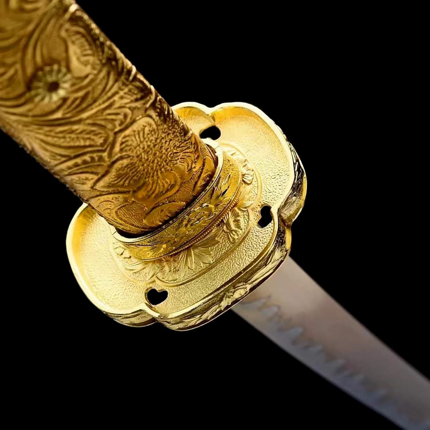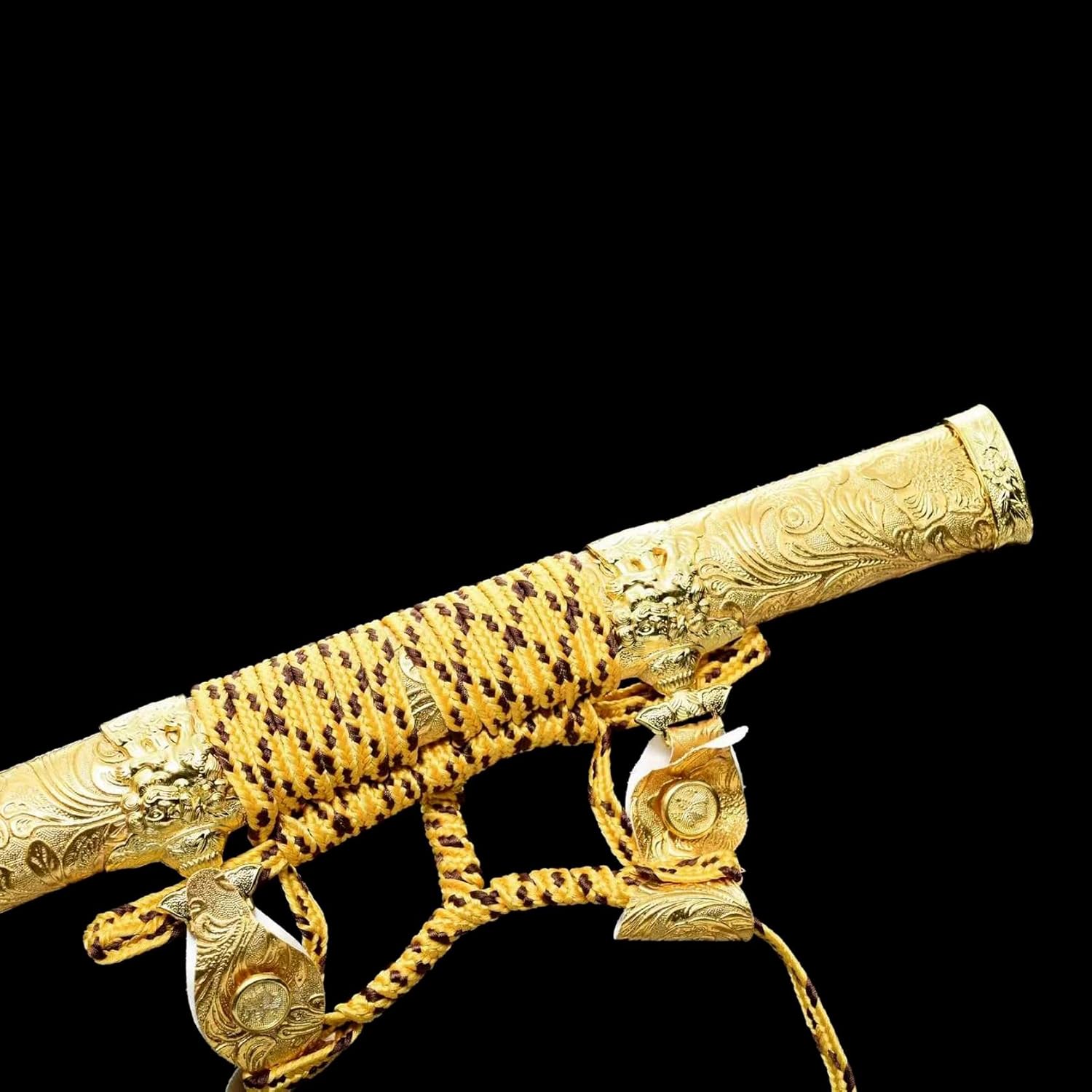 La lama è realizzata in acciaio per molle di alta qualità ed è prodotta utilizzando il tradizionale processo di forgiatura. Forgiato e affilato a mano per creare una lama perfetta. Le proporzioni sono cruciali per la progettazione delle armi. Le proporzioni perfette non solo rendono la katana più bella, ma ne garantiscono anche la praticità e la funzionalità. Lunghezza totale: 104 cm, lunghezza lama: 72 cm, lunghezza manico: 26,5 cm, larghezza lama: 3,2 cm, spessore lama: 0,7 cm, peso totale: 1,2 kg. Ogni katana porta con sé l'essenza dell'artigianato tradizionale. Dalla selezione del materiale alla forgiatura, dalla molatura alla tempra, ogni fase viene accuratamente lucidata dagli artigiani per garantire che ogni katana sia un'opera d'arte unica. Le Katana sono adatte per essere collezionate ed esposte in varie occasioni. Sia nello studio, nel soggiorno, nell'ufficio o nello studio di arti marziali, può diventare una decorazione e un'esposizione unica. Non solo riflette il gusto e la personalità del proprietario, ma conferisce anche alla stanza un'atmosfera misteriosa e solenne.