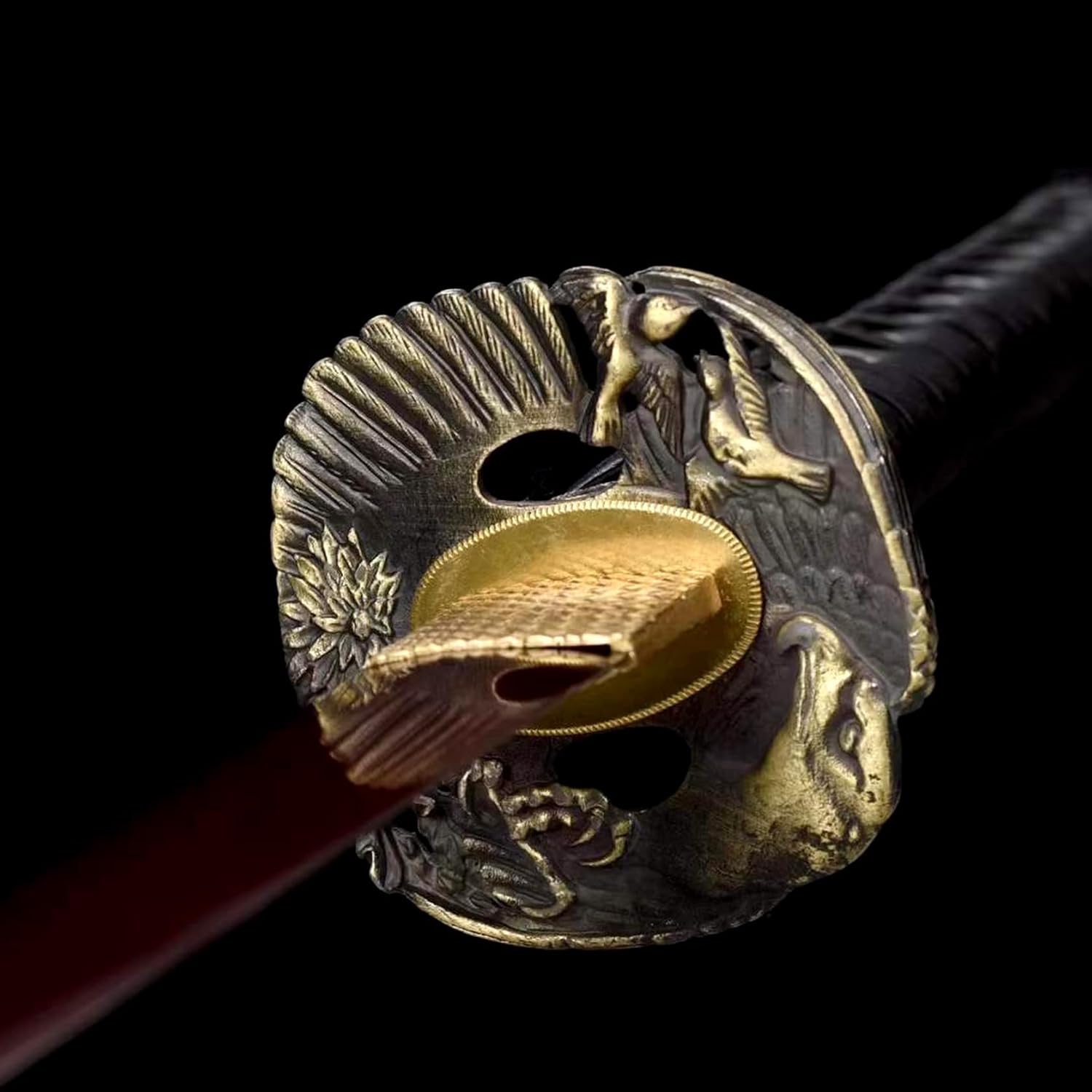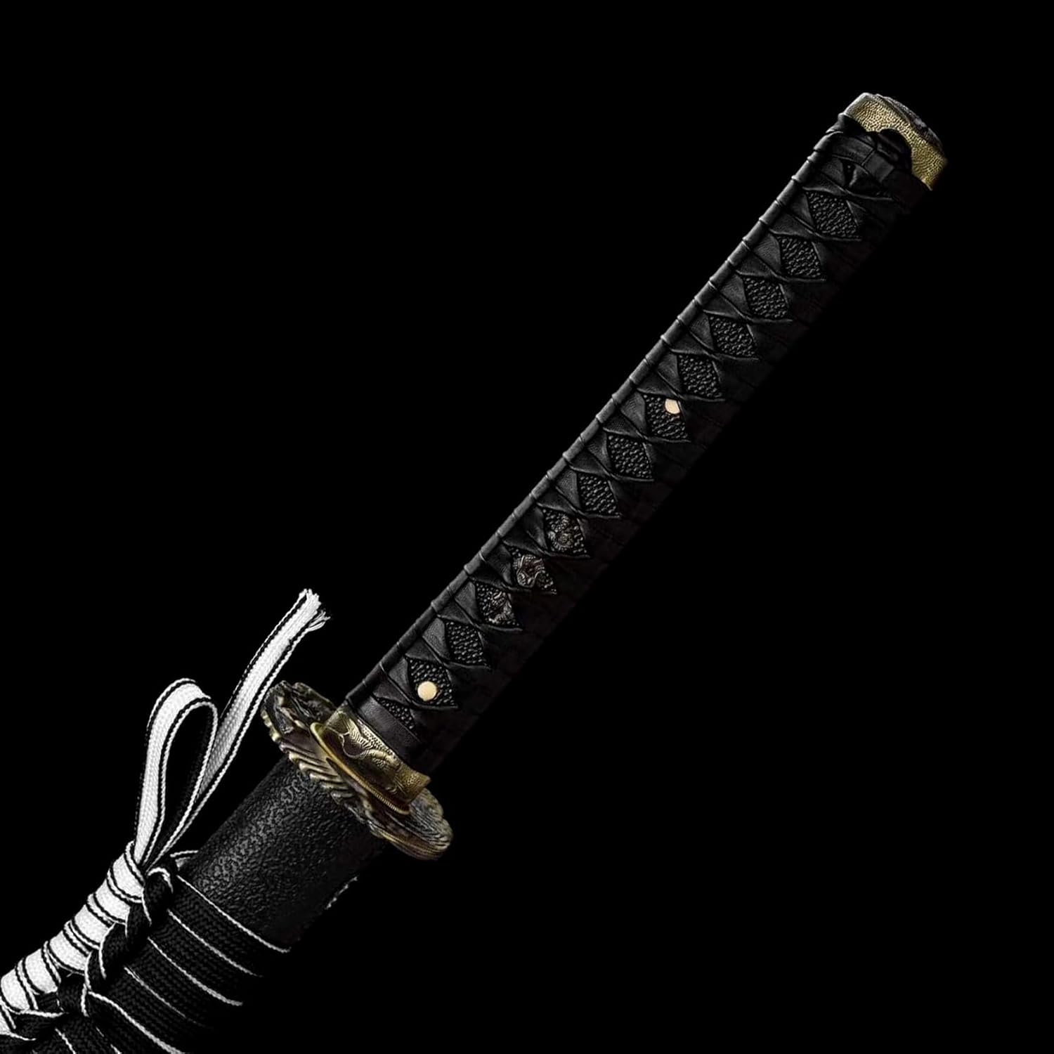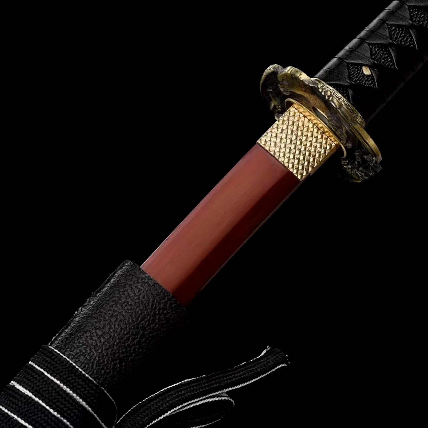 ※ 【Materiale di alta qualità】 La lama della katana è realizzata in acciaio per molle di alta qualità; Il paramano è accuratamente scolpito in metallo di alta qualità, che è allo stesso tempo bello e pratico. Il fodero in legno è avvolto in pelle nera, che è bella e pratica, elegante e allo stesso tempo protegge efficacemente la lama. Il manico è incordato a mano con una corda di cuoio, che è antiscivolo, resistente all'usura e comoda da tenere. ※ 【Artigianato squisito】 Questa spada da samurai è accuratamente realizzata a mano da abili artigiani utilizzando tecniche antiche tradizionali. La lama è accuratamente forgiata in acciaio per molle di alta qualità e trattata con tecnologia rossa. Ha un'eccellente durezza e tenacità e può essere piegato di 90 gradi senza deformazioni. ※【Proporzioni perfette】La lunghezza totale della katana è di 103 cm, la lunghezza della lama è di 71 cm, la lunghezza del manico è di 26 cm e la larghezza della lama è di 3,2 cm. La dimensione è precisa e moderata, quindi puoi controllarla facilmente. Tenere la spada in mano è come viaggiare nel tempo e nello spazio e tornare al periodo degli Stati Combattenti del Giappone, dove puoi praticare il tuo stile eroico di allenamento nelle arti marziali. ※ 【Ampia applicazione】 Questa spada da samurai ad alte prestazioni non è adatta solo per l'allenamento di arti marziali, spettacoli di kendo e altre occasioni, ma è anche la scelta ideale per avventure all'aria aperta e autodifesa. Allo stesso tempo, il suo aspetto raffinato lo rende un'opera d'arte di alto valore collezionistico. Sia per uso personale che come regalo, può soddisfare le tue diverse esigenze. ※【Da non perdere】Se stai cercando una katana che combini perfettamente l'artigianato tradizionale con caratteristiche moderne, allora questa katana è sicuramente la tua prima scelta. Combina la bellezza tradizionale con la modernità, rendendolo una scelta brillante da non perdere.