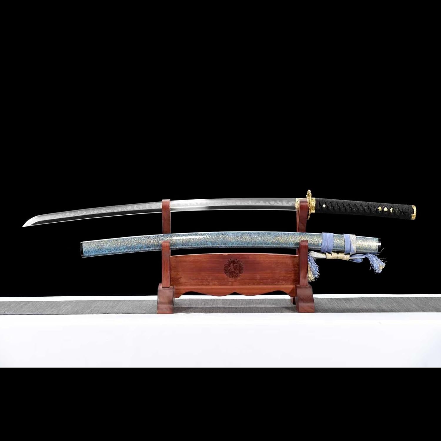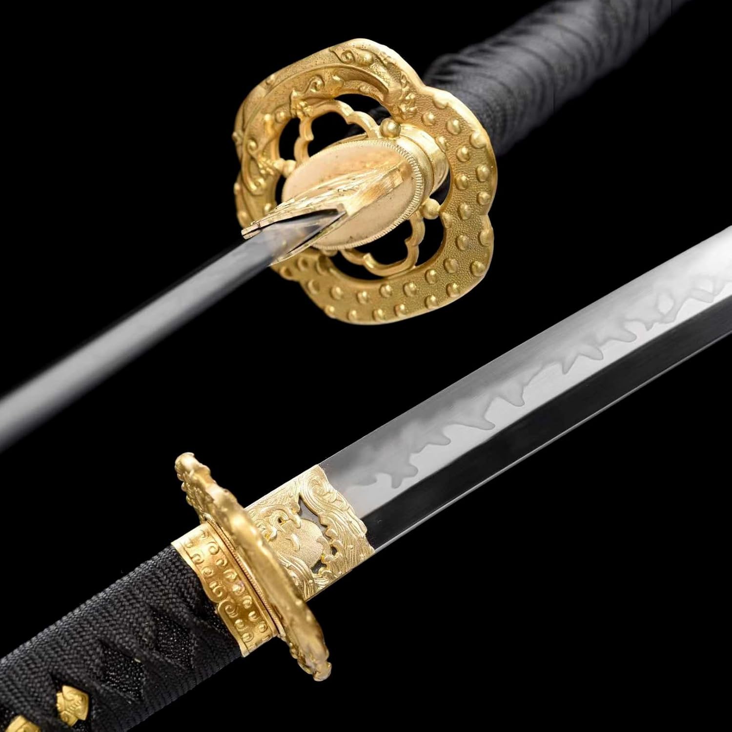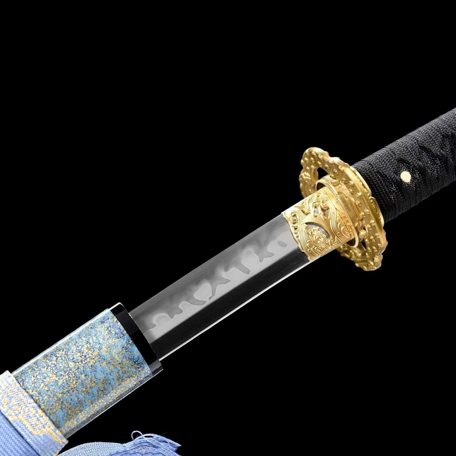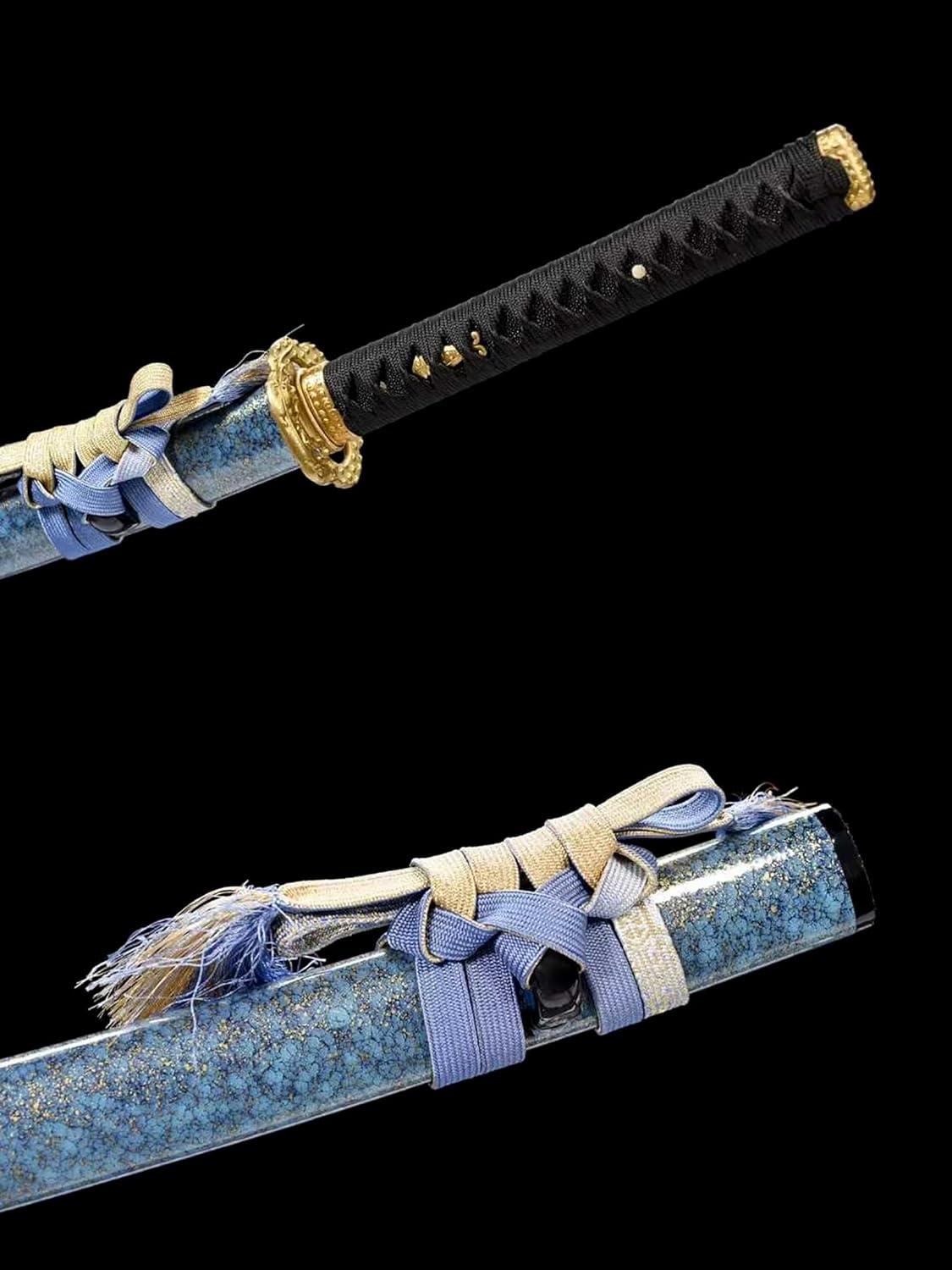 La lama è forgiata a mano in acciaio T10. Durezza 60°. Ogni spada da samurai è un'opera d'arte unica. La katana viene fornita con un fodero in legno per riporre in sicurezza la lama. Il manico è avvolto da una corda morbida che si adatta perfettamente al palmo della mano ed è facile da impugnare. La katana è realizzata a mano con grande attenzione ai dettagli e mette in risalto perfettamente il fascino unico della katana. Lunghezza totale 103 cm, lunghezza lama 71 cm, lunghezza manico 27 cm, larghezza lama 3,2 cm. La dimensione perfetta rende la spada del samurai così armoniosa e bella.