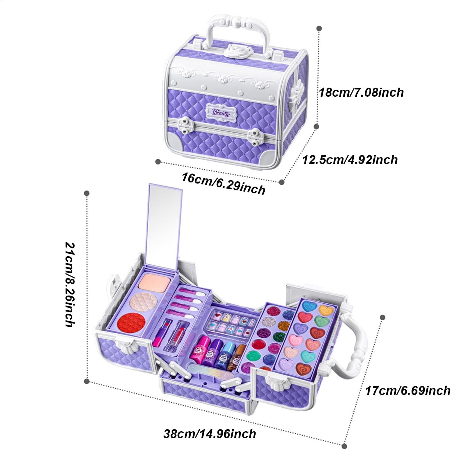 Materiali sicuri: realizzato con formula idrosolubile e ingredienti naturali, questo set per il trucco è delicato sulla pelle giovane e si lava facilmente con acqua e sapone. Incredibile set di trucchi: questo set contiene una straordinaria selezione che offre un'esperienza deliziosa con ogni applicazione e stimola la creatività nelle ragazze. Giocattolo educativo versatile: con il nostro set di trucchi per bambini, la tua piccola principessa può imitare le attività degli adulti incoraggiando la creatività e il gioco fantasioso, rendendolo un'esperienza divertente ed educativa. SEMPLICE DA TRASPORTARE: questa versatile custodia rigida con una comoda maniglia per il trasporto semplifica la conservazione e il trasporto di trucchi, giocattoli e accessori ed è perfetta per l'uso all'aperto. OTTIMO REGALO: questo set è perfetto per i bambini dai 3 ai 12 anni e fornisce un modo sicuro per apprendere abilità di bellezza. È un meraviglioso regalo di compleanno o per la festa dei bambini e un'ottima alternativa al trucco dei genitori.