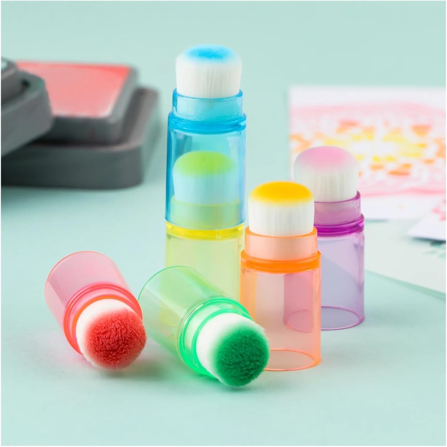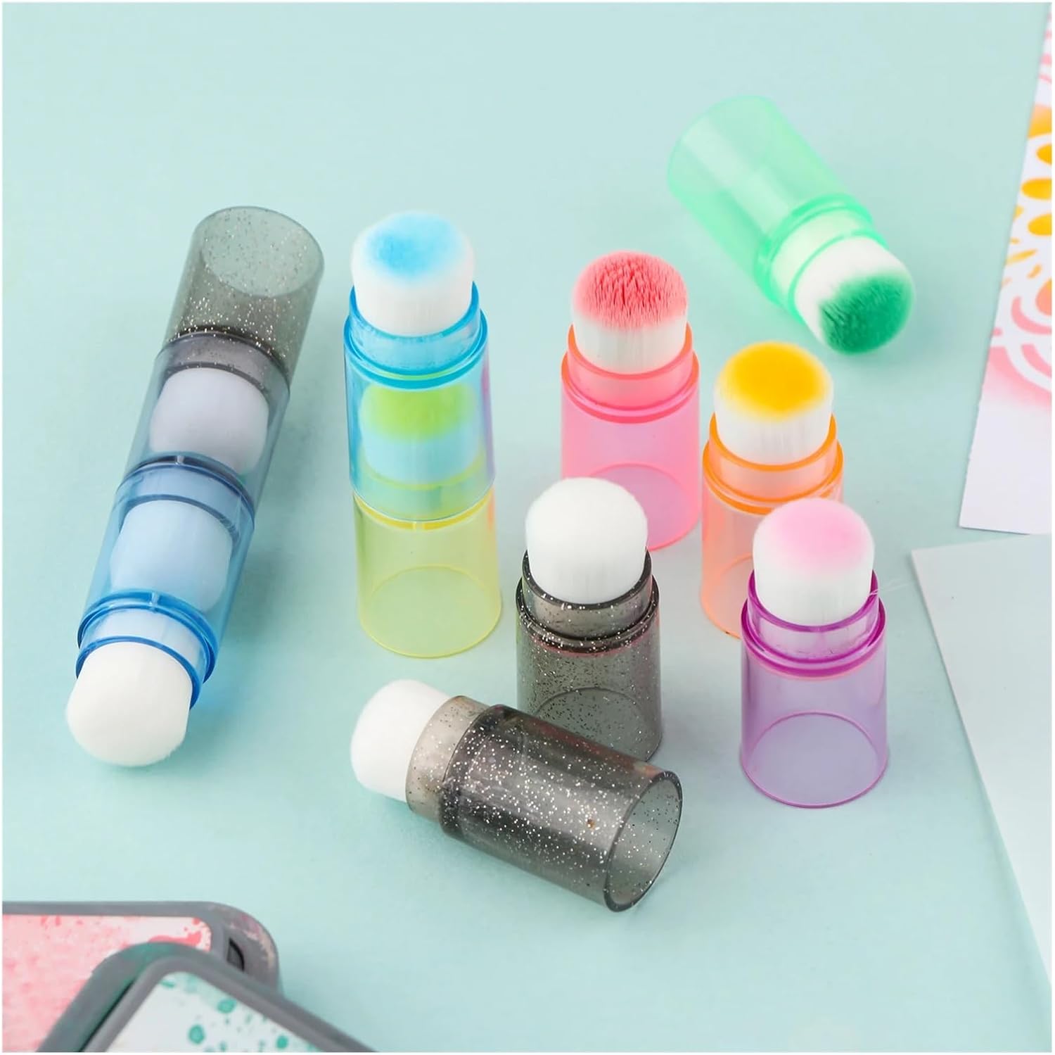 Questi tamponi for le dita sono facili da usare e hanno una forma speciale che li rende facili da indossare sulle dita! Le fibre di capelli bianchi morbidi e di alta qualità nella parte superiore possono essere utilizzate for spalmare, tingere, mescolare e colorare. Sono facili da pulire e hai solo bisogno di acqua e sapone. Assicurati di asciugarli prima del prossimo utilizzo. Impilateli for riporli comodamente in un tubo di plastica trasparente. L'impugnatura traslucida è disponibile in vari colori tra cui scegliere, quindi ogni colore è chiaramente indicato.