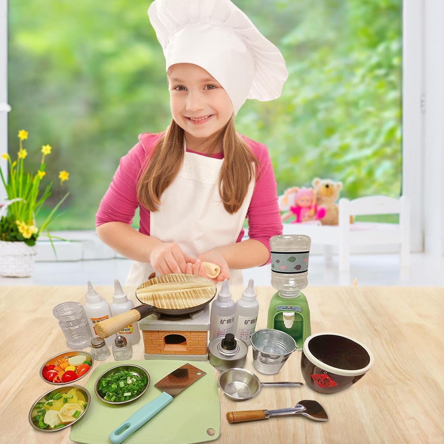 Promuovi le abilità culinarie: osserva lo sviluppo delle abilità culinarie dei tuoi figli con la nostra mini cucina che cucina davvero. Lascia correre la tua creatività e libera il tuo amore per la cucina. Con le registrazioni video dal vivo potranno imparare e migliorare divertendosi in cucina. Perfetto per i giovani chef. Unisciti a noi, piccoli chef: offri ai tuoi chef un'esperienza culinaria completa con il nostro vero set da cucina. Dotato di fidati taglieri, pentole, pentole e bottiglie di spezie, questo set consente loro di giocare in modo più coinvolgente ed espandere la loro immaginazione culinaria. REALIZZATO DA ESPERTO: lascia che la tua cucina cucini in tutta sicurezza con il nostro set da cucina autentico, realizzato con cura per garantire sicurezza e durata. Ha superato severi test di sicurezza ed è sicuro e innocuo per un'avventura culinaria spensierata. Sviluppo culinario giocoso: incoraggia il gioco di ruolo e stimola la creatività con questo vero set da cucina per il. Prepara deliziosi pasti per la famiglia e gli amici mentre giochi nei panni di una piccola cucina o del proprietario di un ristorante. Sviluppa le tue abilità sociali e fantasiose con ogni piatto. Regali caldi per tutti: rendi la tua casa più piena con questo set da cucina, una scelta ideale per l'inaugurazione della casa e perfetta per trascorrere del tempo di qualità con la famiglia. Regalatelo agli amanti, agli amici e create bellissimi ricordi insieme.