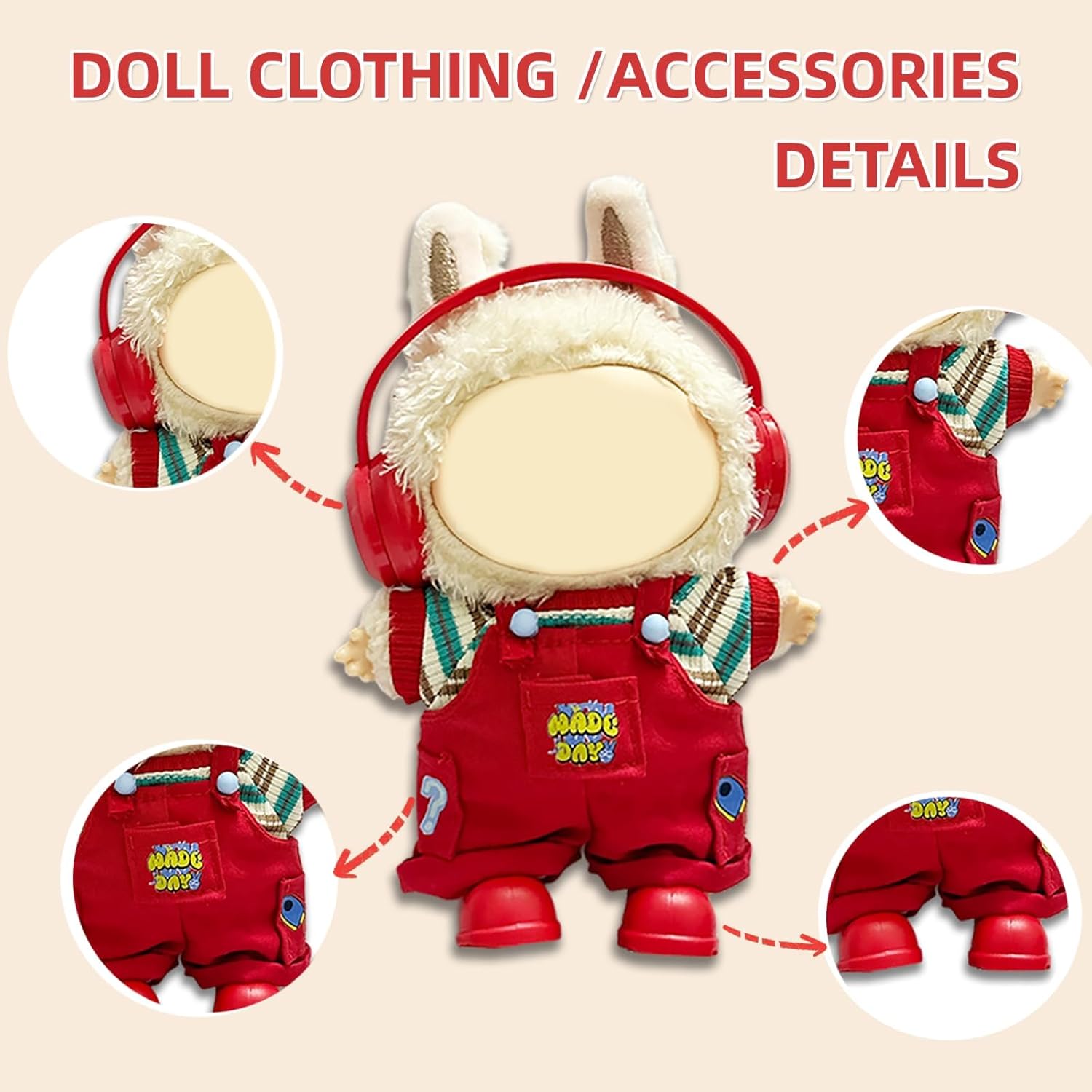 Adatto per bambole da 17 cm: questi vestiti per bambole alla moda sono realizzati su misura per bambole da 17 cm, con una vestibilità perfettamente aderente. Una volta vestita, la tua bambola alla moda rimarrà comoda, avrà un aspetto elegante e si distinguerà, ideale per gli stili comuni di bambole alla moda. Set di 4 pezzi per bambola carina: questo adorabile set da 4 pezzi per bambole da 17 cm include un top a maniche corte a righe, pantaloni con bretelle con tasca rossa, cuffie rosse abbinate e scarpe rosse alla moda, perfetto per vestire la tua bambola da 17 cm in un look bello e affascinante. Bambola non inclusa; il set contiene solo vestiti rossi per bambole da 17 cm e accessori per bambole rossi da 17 cm. Set curato con accessori: ogni set di abiti per bambole viene fornito con accessori accuratamente selezionati, rendendolo un'ottima scelta per espandere la tua collezione di bambole e accessori. Puoi mescolare e abbinare in base al tuo umore o occasione per dare alla tua bambola un nuovo stile fresco ogni giorno. Vestirsi senza sforzo: realizzati in tessuto ad alta elasticità, i vestiti per bambole sono facili da indossare e togliere senza tirare, riducendo al minimo il rischio di danneggiare la bambola. Perfetto come regalo: vestiti e accessori per bambole da 17 cm sono un regalo ideale per gli amici. È ottimo come regalo di Halloween, regali di Natale, regali di festa, regali di compleanno e una scelta migliore per regali di coppia, specialmente per coloro che amano le bambole alla moda, aiutandoli ad aggiungere nuovi vestiti e accessori per bambole alle loro bambole.