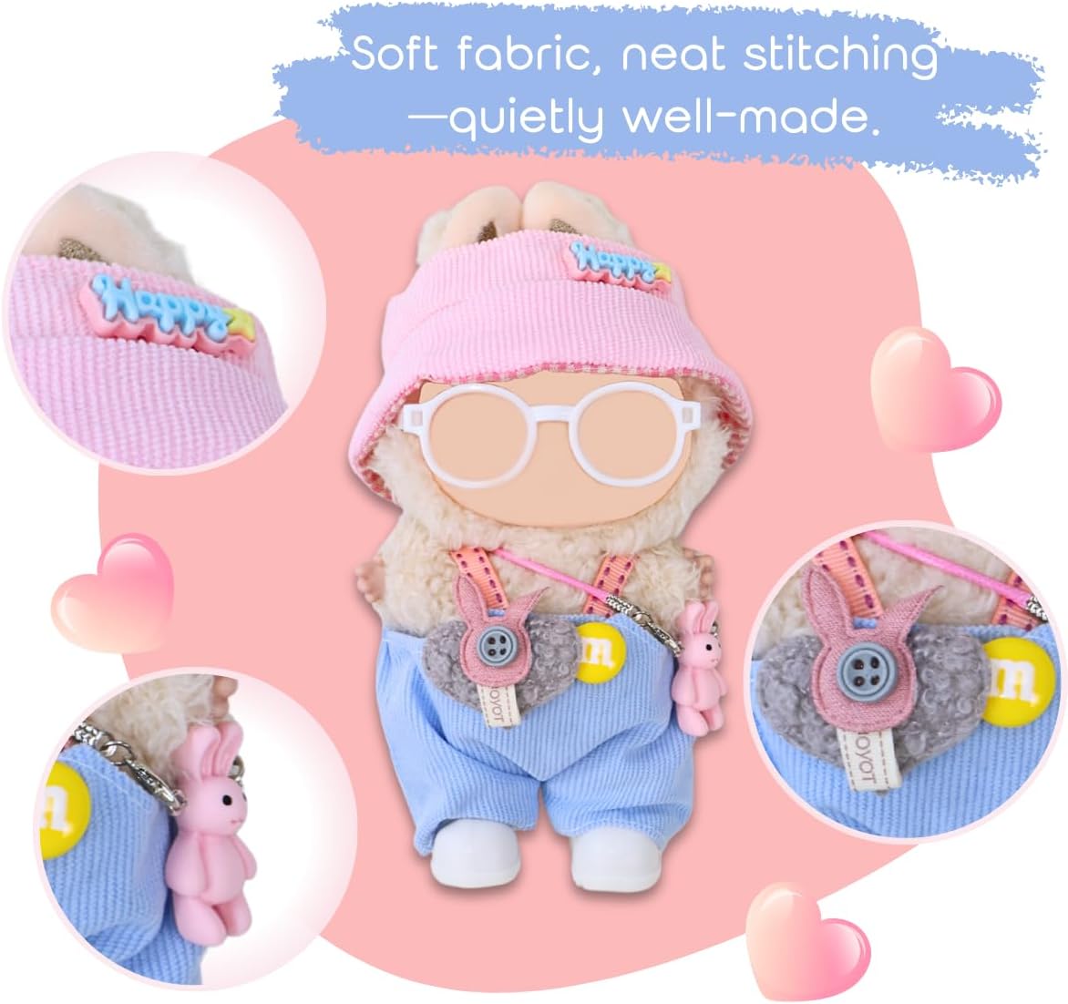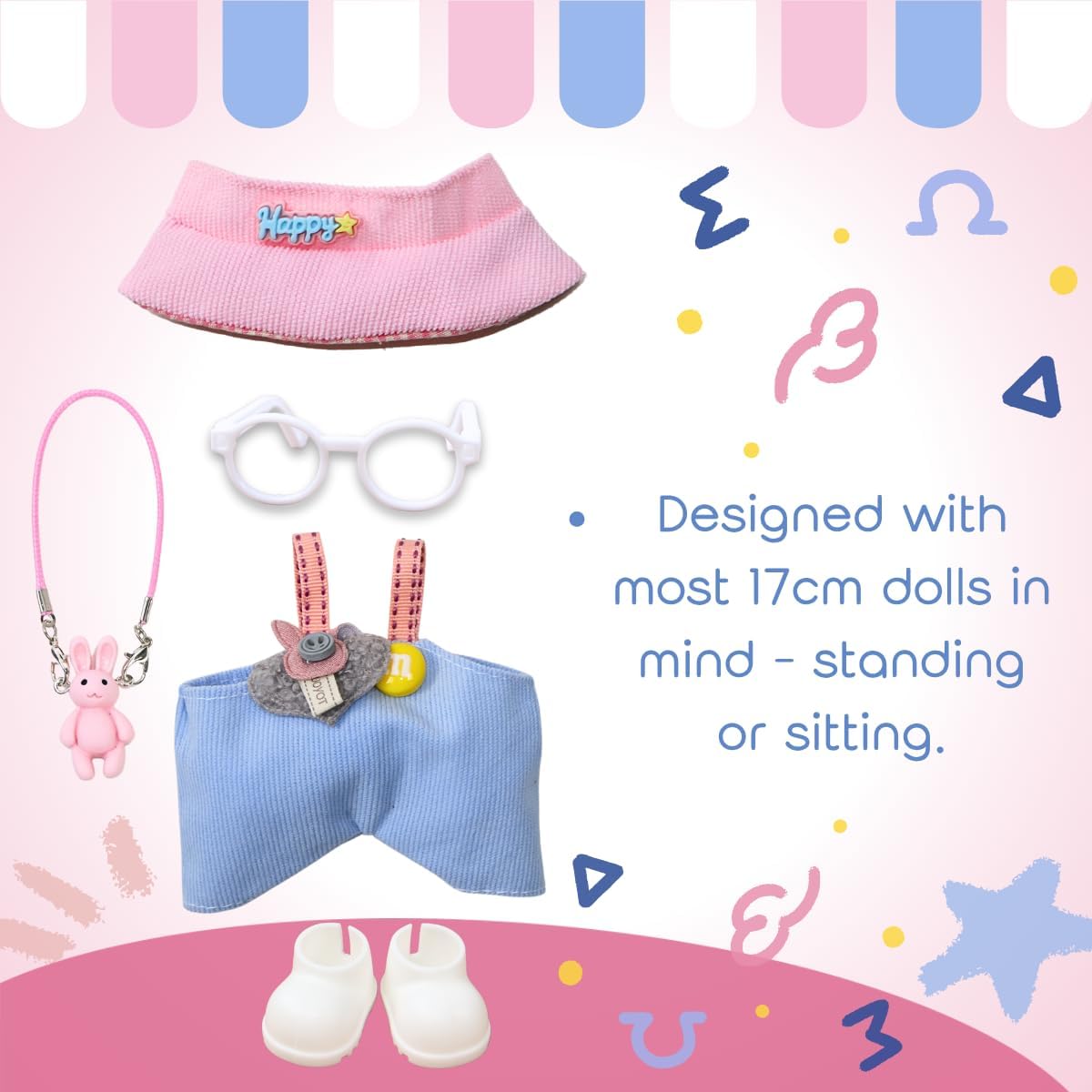 Completo da 6 pezzi con accessori coordinati: vesti la tua bambola con un cappello da sole scozzese rosa e bianco, una tuta abbinata, scarpe e occhiali bianchi e una borsa a tracolla rosa a forma di coniglietto, aggiungendo un tocco vivace e carino ai tuoi outfit quotidiani. Ogni confezione include un mini gancio. TESSUTO CONFORTEVOLE E DUREVOLE: realizzato in tessuto di poliestere morbido e resistente con cuciture intelligenti. Progettato per un uso ripetuto mantenendo l'integrità della struttura e del colore complessivi. Si adatta alla maggior parte delle bambole - Gen 1, 2 e 3: dimensionate con cura per adattarsi alle bambole di 1a, 2a e 3a generazione, sia in piedi che sedute. Per una corporatura più fluida, è meglio iniziare dai piedi piuttosto che dalla testa. VERSATILE PER IL GIOCO O L'ESPOSIZIONE DI TUTTI I GIORNI: Che si tratti di abiti casual o di stili a tema, ogni articolo offre flessibilità. Una bella aggiunta per la fotografia di bambole o allestimenti fantasiosi. Regalo attraente con ampio appeal: ideale per sorprese casual o regali stagionali. Particolarmente amato dai collezionisti e dagli appassionati di bambole che apprezzano gli elementi di moda dolci e il design delicato.