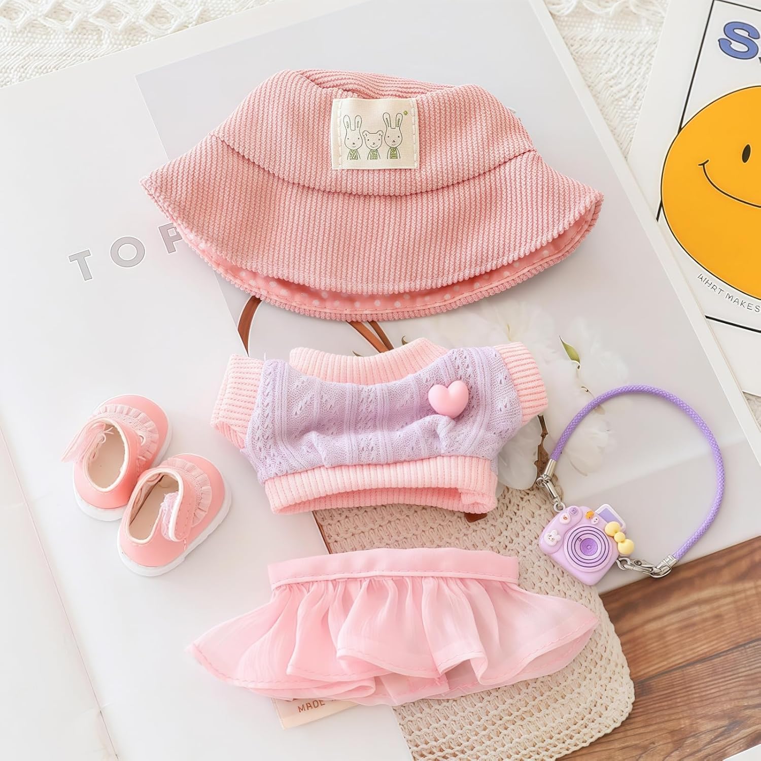 Pacchetto e servizio: La confezione include 1 x cappello, 1 x maglione, 1 x gonna, 1 x modello di fotocamera (non vera fotocamera), 2 x scarpe. Bambola non inclusa. Non esitate a contattarci se avete domande. Materiale eccellente: questo vestito è realizzato in tessuto morbido che è durevole, confortevole, non sbiadisce, sicuro ed elegante. Ampia applicabilità: questo set di abbigliamento kawaii è adatto per bambole da 15 cm e 17 cm. Non è solo una decorazione per la casa, un regalo per feste, ma anche un attraente accessorio da scrivania o auto. Accessori unici e pratici: l'adorabile cappello da pescatore, la fotocamera Mordern e le simpatiche decorazioni per scarpe in questo set di accessori ti fanno sentire rilassato e felice. Ti porta un buon umore ogni giorno. Design superiore: lo stile unico conferisce alla tua bambola un look piuttosto alla moda e kawaii. È perfetto per l'uso quotidiano o da collezione. È anche ideale come regalo per uomini, donne, amanti e amici in vacanze speciali come Natale, San Valentino, giorno del Ringraziamento, festa della mamma, ecc.