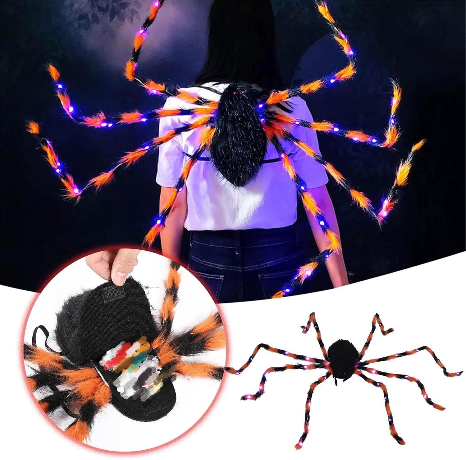 Materiale: realizzato in tessuto, molto morbido e confortevole, leggero, durevole e robusto, e non si blocca. [Design] Il corpo principale è un design a borsa, che è molto comodo da aprire e chiudere. Puoi mettere snack come caramelle. Suggerimenti! Può essere utilizzato come decorazione o come pacchetto per imballare cose. Occasione: uso quotidiano, Halloween, feste a tema, feste in maschera, feste in costume, feste in maschera, carnevale, feste di ruolo, travestimenti, foto ecc. [Dimensioni] La nostra taglia, adatta per giovani e adulti. Le cinghie sono flessibili e adatte alla maggior parte delle persone senza disagio. [Forma] Forma realistica, 8 gambe lunghe, ogni gamba può essere regolata liberamente per piegarsi, può essere piegata a vostra soddisfazione e le gambe possono essere piegate quando non in uso. Gli occhi rossi hanno una strana sensazione. Goditi un felice Halloween con i tuoi amici.