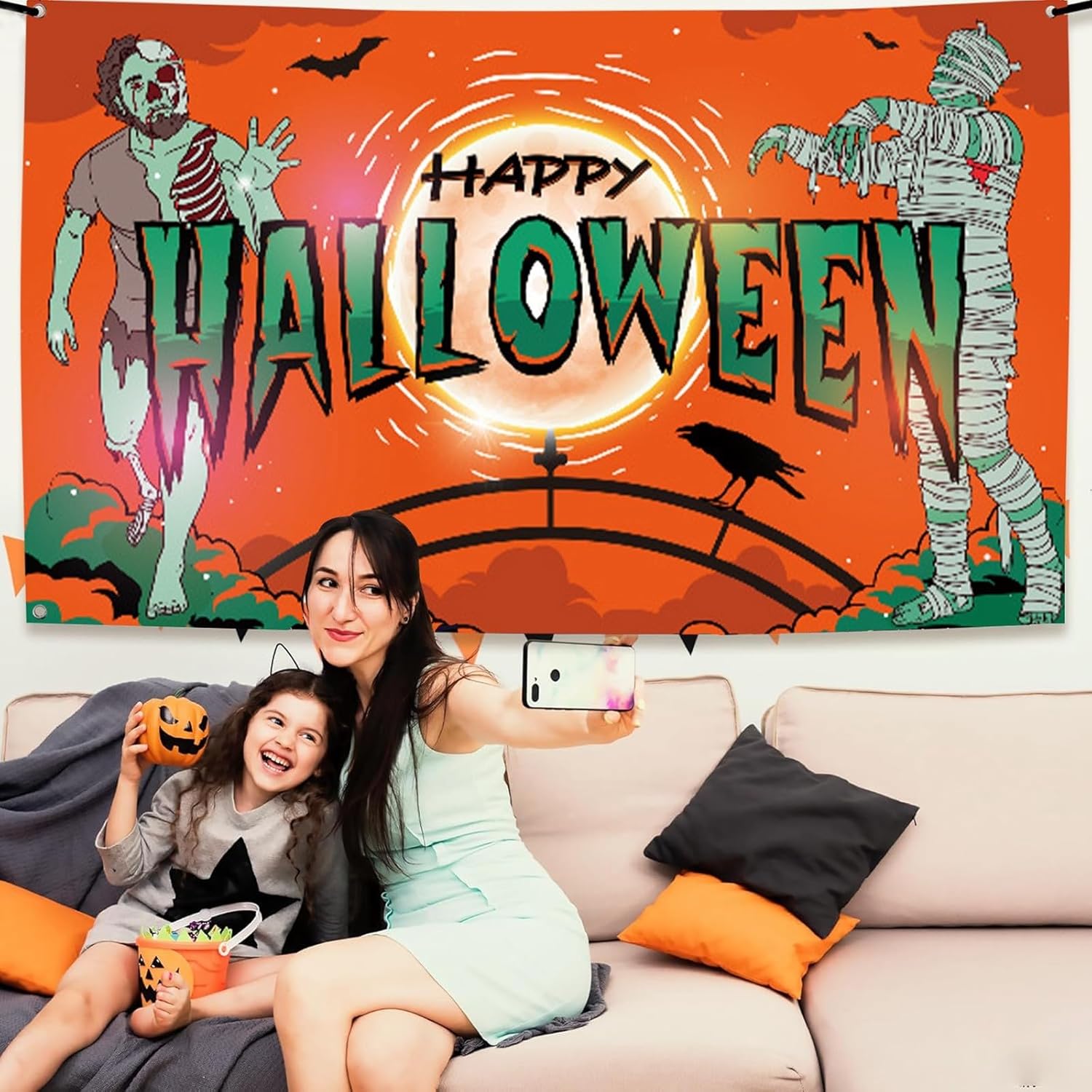 Deve avere fornitura di Halloween appositamente progettato, questo striscione di decorazioni di Halloween sicuramente un'atmosfera per Halloween, e si può usare con ghirlanda di Halloween come muro di pipistrelli, strega, . Grande Halloween, 1 pezzo Happy Halloween, 1,85 m x 1,1 m, perfetto per decorazioni per feste di Halloween, decorazioni di Halloween per casa, cabina fotografica di Halloween. Rimani felice all'interno e all'esterno, questo striscione di Halloween felice viene fornito con corda per appenderlo, puoi usarli per casa, parete, finestra, porta del garage, caminetto, soggiorno, recinzioni, cortile e scattare foto per mantenere il tuo ricordo felice Riutilizzabile e facile da tenere la foto di Halloween è realizzata in poliestere robusto, forniture per feste di Halloween, lavabile, durevole e riutilizzabile e facile da trasportare e conservare per anni. È una bella decorazione di Halloween per interni, perfetta per pareti di Halloween, casa di Halloween, stanza di Halloween, pipistrelli decorazione di Halloween, decorazioni per la tavola di Halloween, decorazioni di Halloween per streghe, Halloween per fotografia.