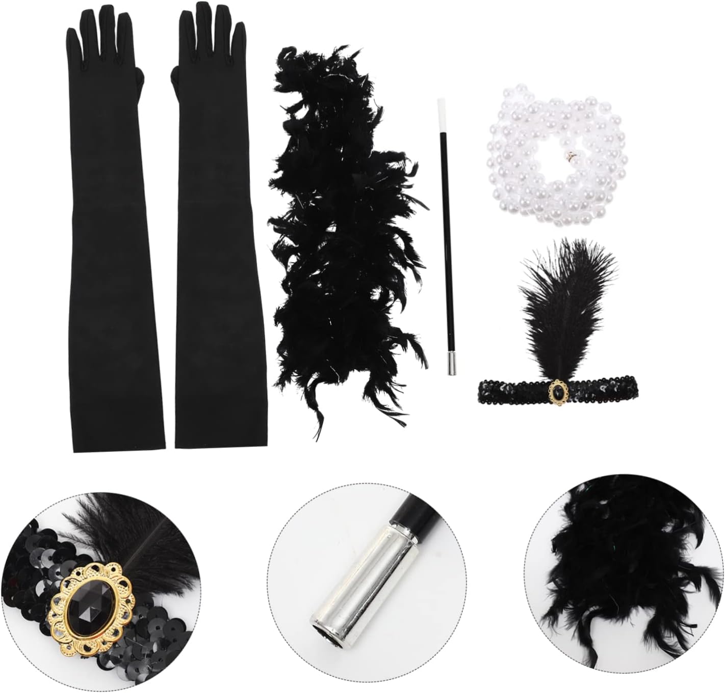 il pacchetto include 3 x paio di guanti 3 x collana 3 x supporto 3 x fascia per 3 x sciarpa caratteristiche - materiale: poliestere, abs 1920 accessori donna - dimensioni dei guanti: circa 52,00x10,00x0,50 cm/ 20,44x3,93x0,20 pollici Costume da flapper anni '20 - dimensioni del supporto: circa 22,00x1,00x1,00 cm/8,65x0,39x0,39 pollici braccialetti di perle da donna - fantastica decorazione per scattare foto con familiari e amici, anche una scelta squisita per gli accessori del costume da festa della tua ragazza . - di ottima fattura, copricapo da donna anni '20 vintage ed elegante, leggero e molto facile e comodo da indossare. - lo stile squisito e retrò rende il tuo vestito unico, lasciandoti un indimenticabile del costume da donna. - La fascia e i guanti possono essere utilizzati con costumi di Halloween, attività di cosplay, carnevale, ecc. Fasce per donna. - tutti gli oggetti di scena hanno una struttura semplice, che li rende facili da indossare e da togliere, il che è comodo e pratico per le donne. - colorenero copricapo flapper informazioni merce oggetti di scena cosplay anni '20 stai cercando accessori anni '20 da indossare o da ai tuoi amici? questo articolo può essere adatto a te. Accessori per costumi da festa che contengono fascia per , guanti lunghi, collana e altro ancora. I copricapo da donna del 1920 in stile vintage ti renderanno brillante e unico nella tua festa, adatteranno facilmente alle donne