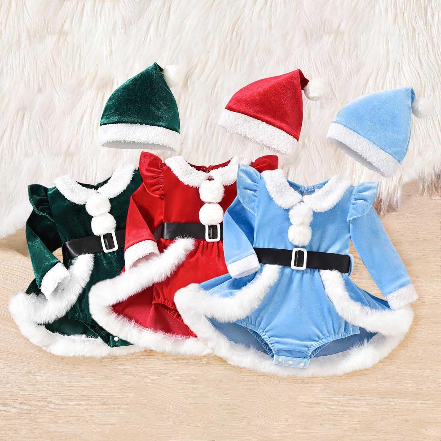 È Un Confortevole Pagliaccetto Di Velluto Per Bambini Con Pelliccia La Tuta Di Babbo Natale Con Berretto Offre Completa Vestito Di Natale Per I Neonati