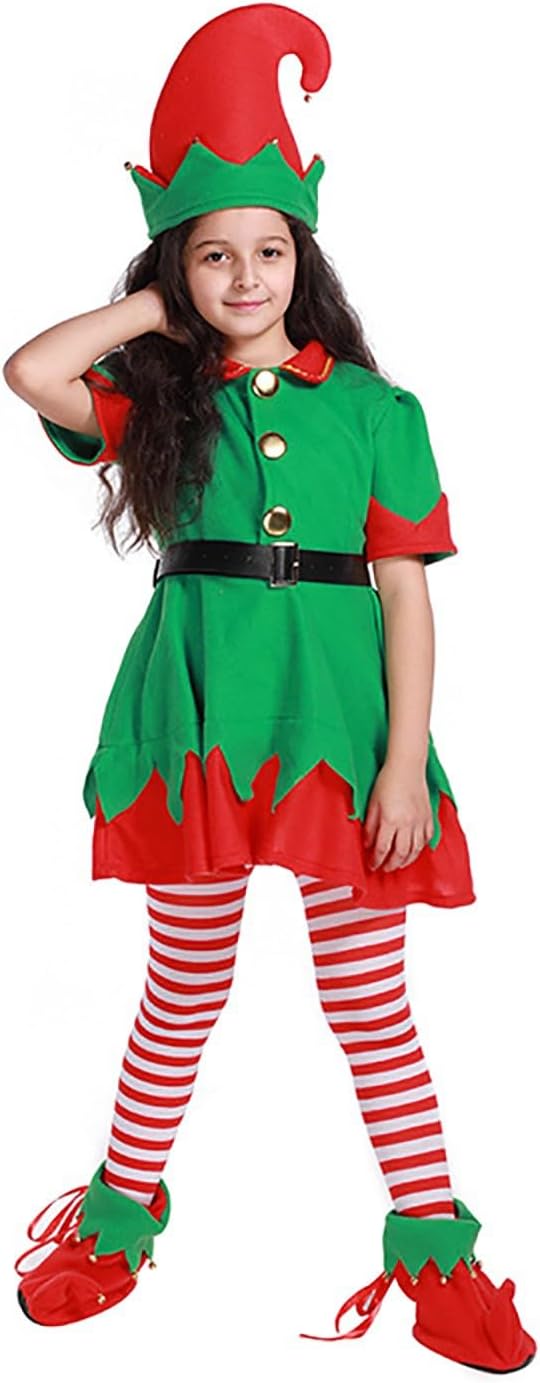 Vestito Elfo Natale Set Set Completo Elfo Natalizia Piccolo Aiutante Di Babbo Costumi Gonna Cappelli Calzini Vestiti Bimbo Natalizie Verde Kit Vestito Natalizio Bambina Travestimenti