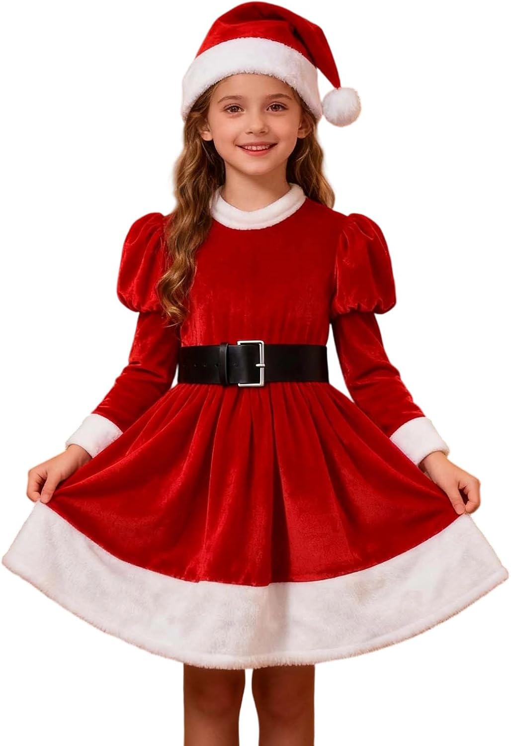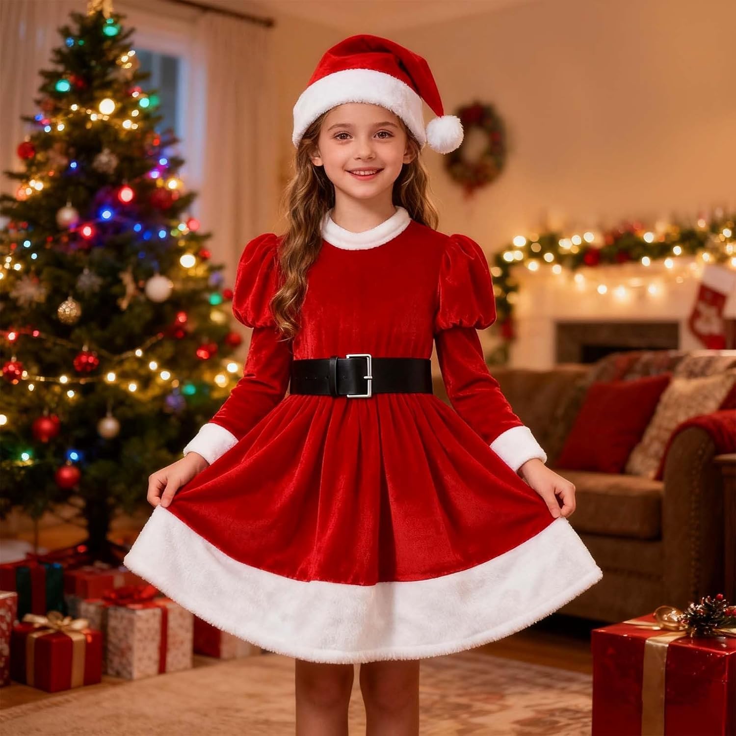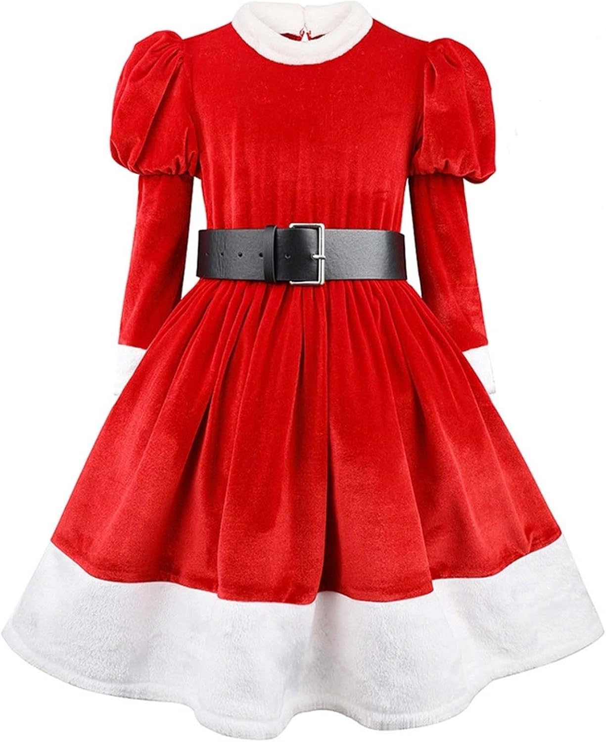 Vestito natalizio per bambini, abito rosso con maniche a sbuffo, gonna per feste, costume da spettacolo, abbigliamento cosplay, materiale morbido traspirante, eventi festivi, età da 4 a 12 anni