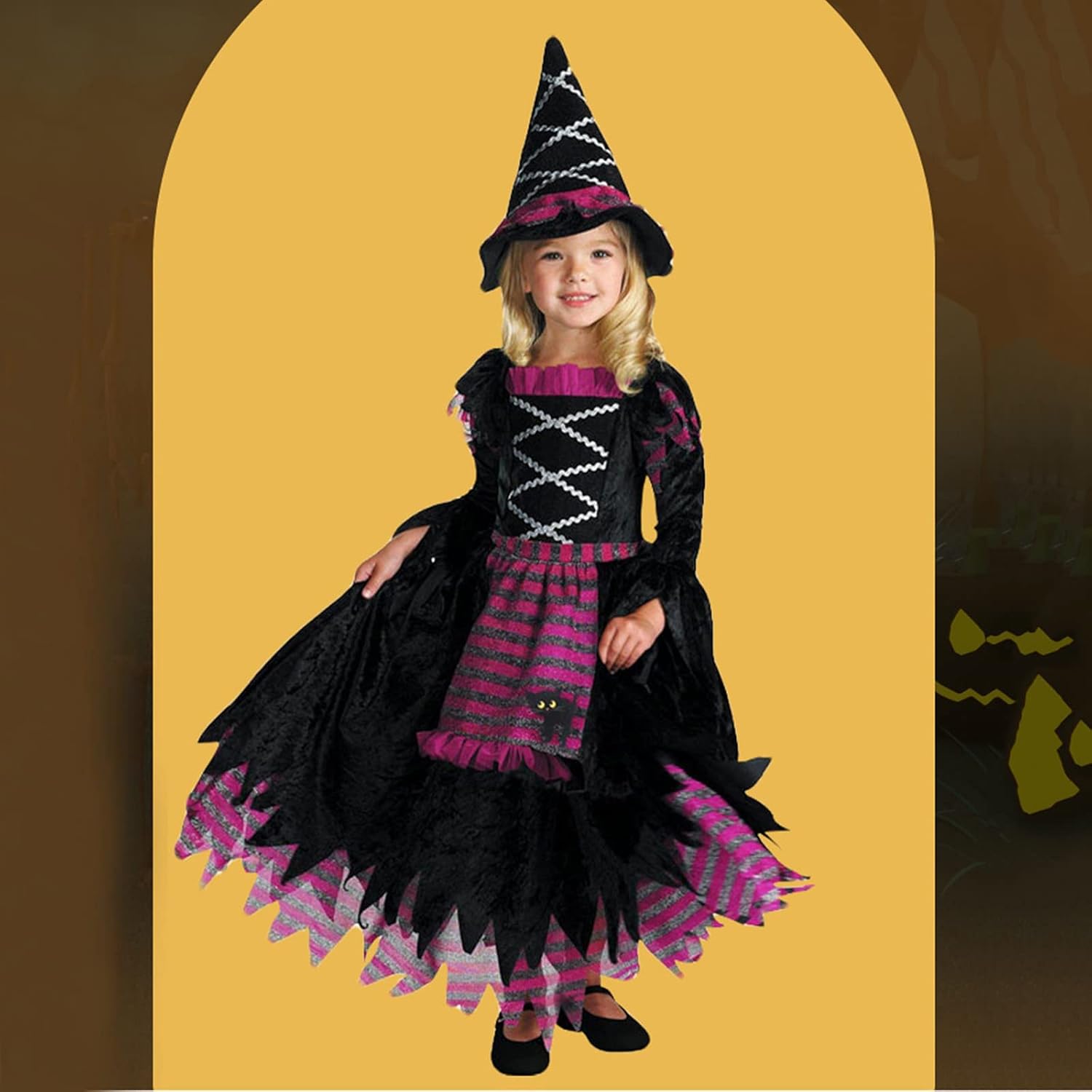 Vestito Streghetta Halloween Abito Strega Per Bambino Ragazze Costumi Da Bimba Da Tutu Con Cappello Gotico Vestiti Di Halloween Principessa Abiti Bambina Da Carnevale Travestimento