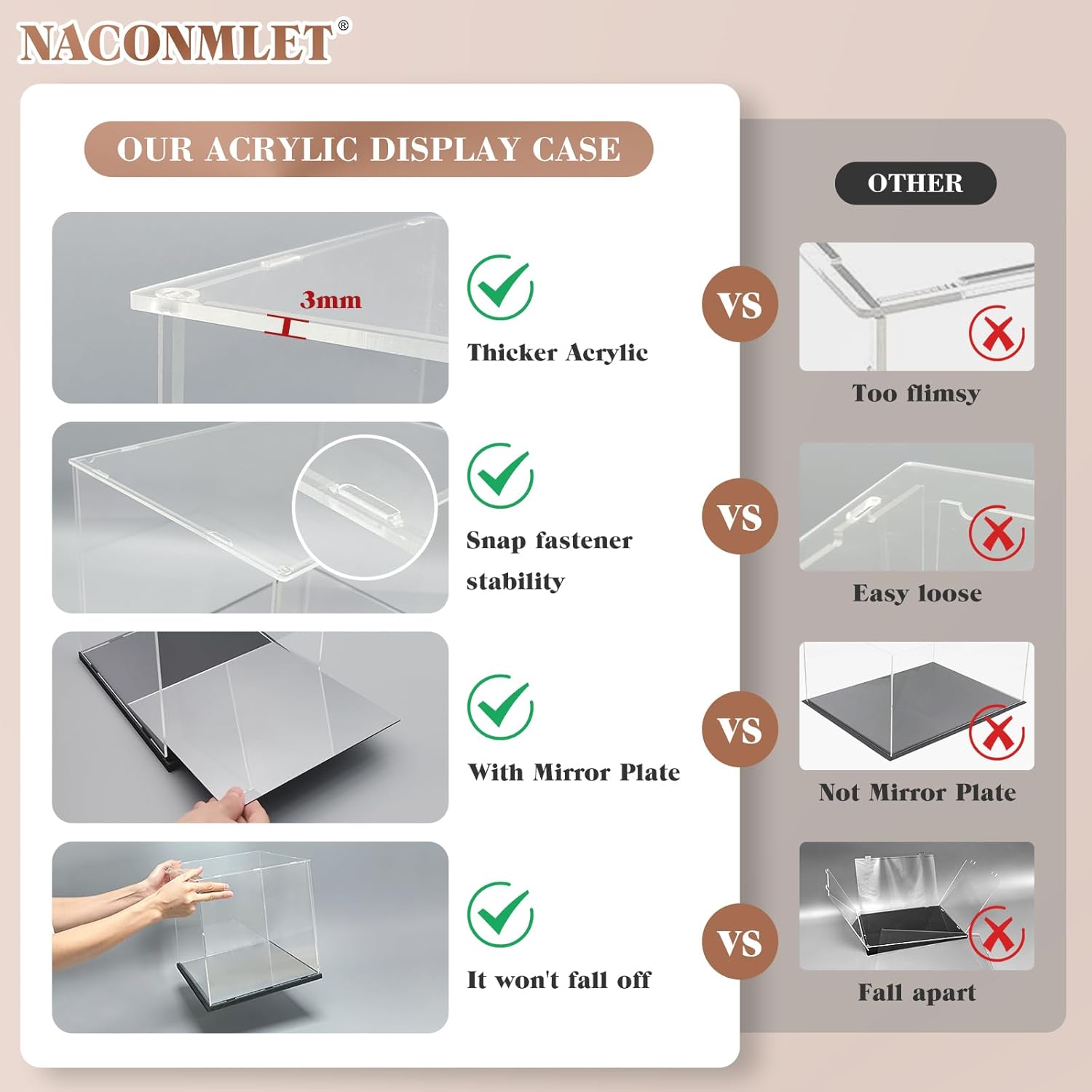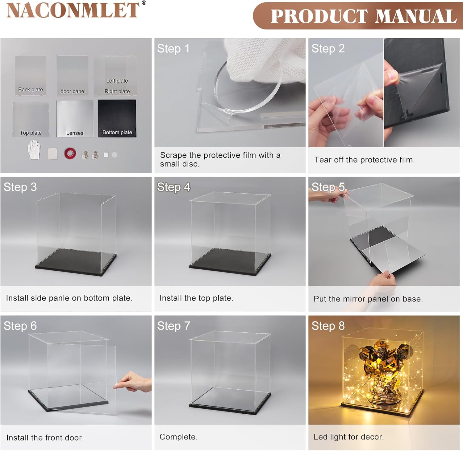[Vetrina per personaggi LEGO] La dimensione esterna è: 15*15*15 cm, la vetrina in acrilico trasparente è appositamente progettata per giocattoli da costruzione o souvenir della Collezione LEGO, ecc. È possibile posizionare anche altri oggetti da collezione di dimensioni simili. Tubo espositivo: acrilico spesso 3 mm, materiale acrilico di alta qualità, vetrina trasparente al 90%, struttura innovativa che offre una visione chiara a 360 gradi. La vetrina in plexiglass ad alta trasparenza è una vetrina protettiva antipolvere per i personaggi LEGO, che può mostrare chiaramente le loro collezioni, mantenere pulito lo stoccaggio e ridurre l'esposizione alla luce solare e ai raggi UV. Facile da montare: rimuovere la pellicola protettiva prima dell'installazione. Basta posizionare i lati in basso e in alto, quindi installare la porta e l'installazione richiede solo pochi minuti. È un gioco per bambini per i fan dei Lego. Vetrina in acrilico trasparente: la nostra vetrina è realizzata in acrilico di alta qualità per proteggere ed esporre i tuoi oggetti da collezione preferiti come personaggi, modelli, ecc. Ideale per banconi, stand, fiere dell'artigianato, mostre, case, uffici. La scelta migliore per collezionisti e fan LEGO, semplice ed elegante, perfetta per vetrine di personaggi e vetrine da collezione.