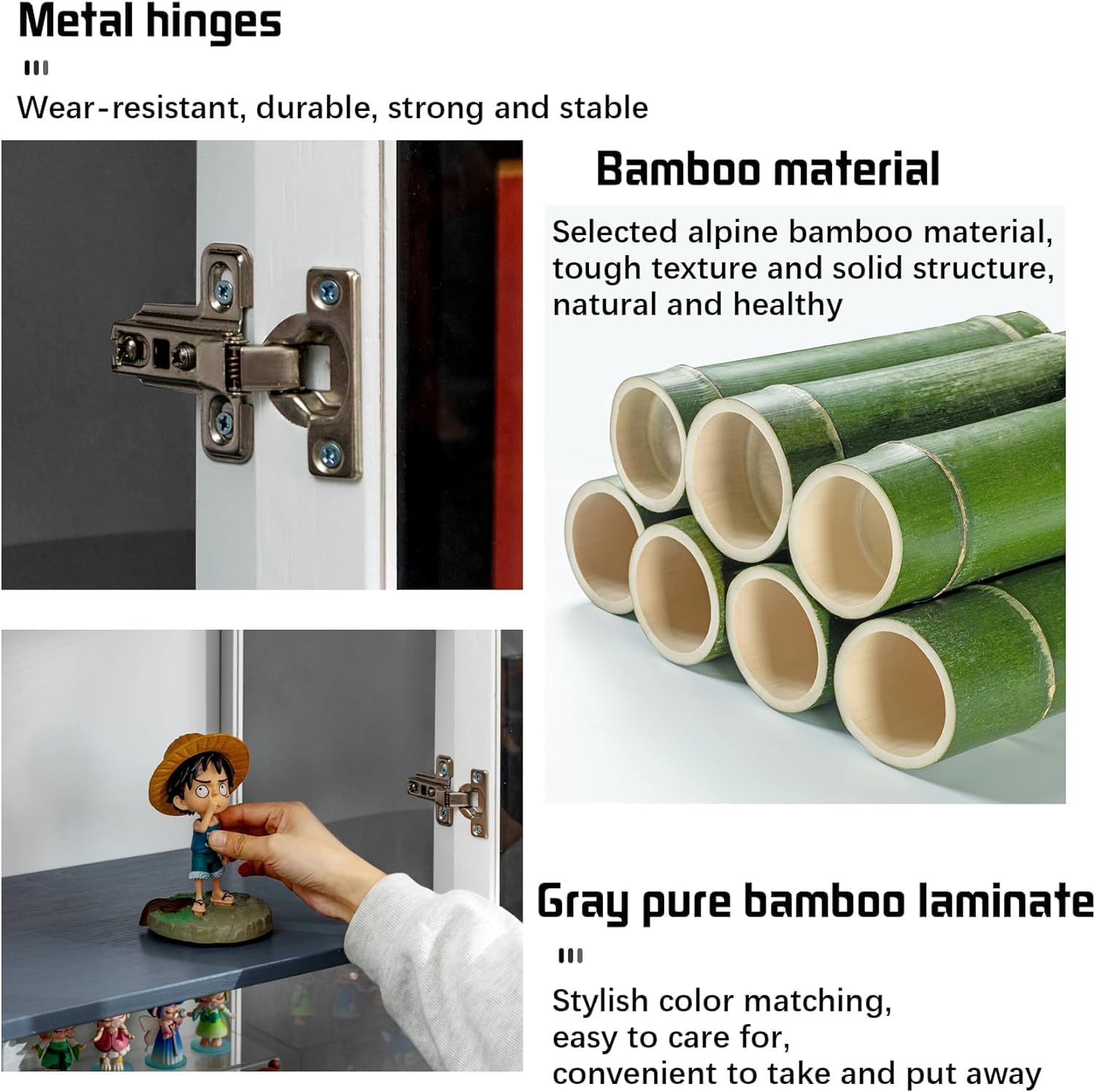 Materiale del prodotto: realizzato con struttura in bambù naturale, che garantisce un'esposizione sana e naturale. Il pannello posteriore è realizzato in pannello composito, con caratteristiche antipolvere e antigoccia. La combinazione di questi materiali crea un'aggiunta estetica alla tua casa. Tre lati trasparenti: il design a doppia porta consente una facile apertura e chiusura, offrendo un comodo spazio di archiviazione. Il materiale acrilico altamente trasparente su tre lati garantisce una chiara visibilità degli oggetti esposti, pur essendo resistente alla polvere e non ostruttivo, migliorando l'estetica generale del tuo ambiente domestico. Dettagli migliorati: con una distanza di 31 cm tra ogni strato, la vetrina è adatta per posizionare la maggior parte delle figure. I laminati spessi offrono una forte capacità di carico e durata, fornendo un posto sicuro per le tue figure. La profondità di 33 cm consente un ampio spazio di contenimento. Installazione semplice: la vetrina può essere facilmente installata anche dalle ragazze. Viene fornito con disegni e video di installazione e tutti i fori per le viti sono preforati. Basta assemblare le viti e se hai domande durante il processo di installazione, non esitare a contattarci. Uso versatile: perfetta per il tuo ufficio, soggiorno o camera da letto, questa vetrina da parete è adatta a vari oggetti da collezione. Che si tratti di bambole, mattoncini, decorazioni, statue o cornici, questa vetrina ti consente di esprimere il tuo amore e la tua passione per gli oggetti da collezione in molteplici modi.