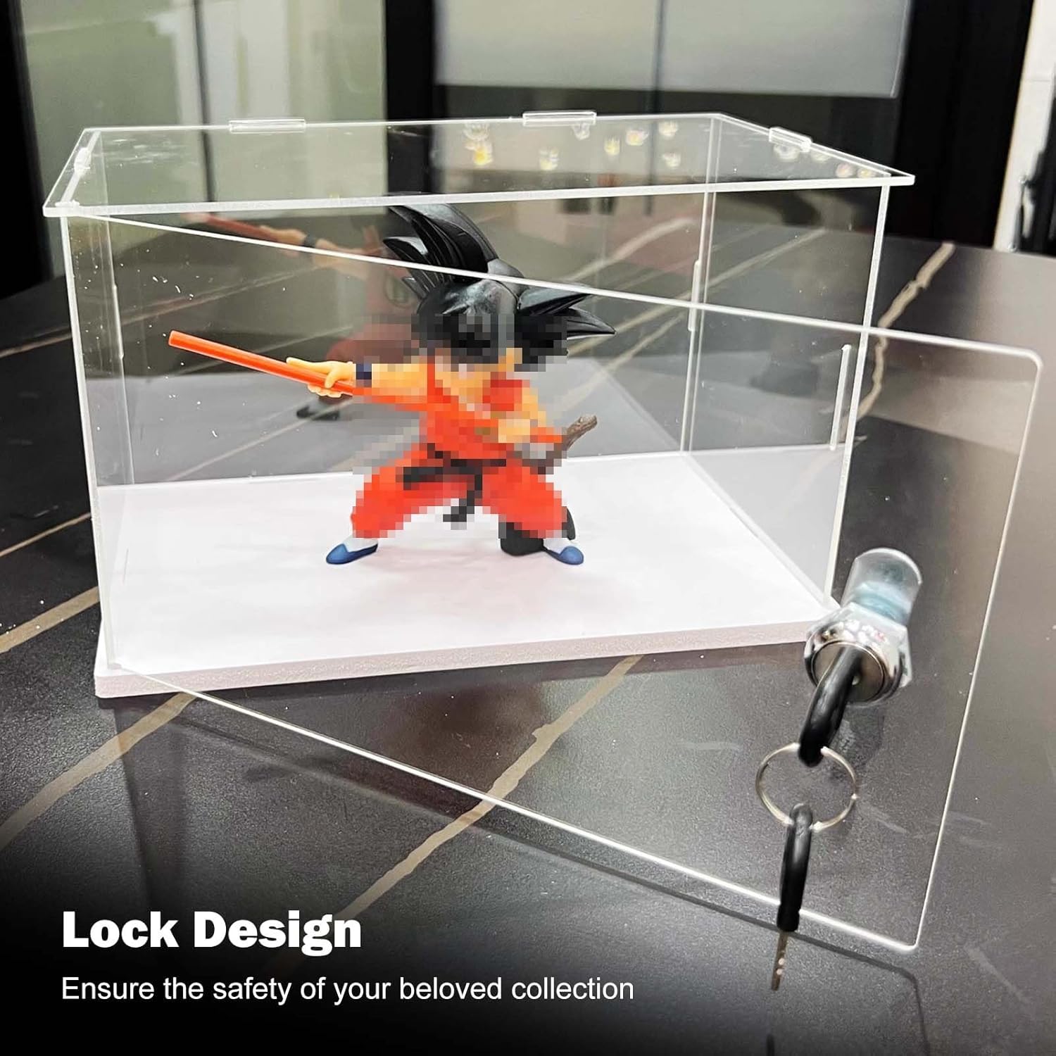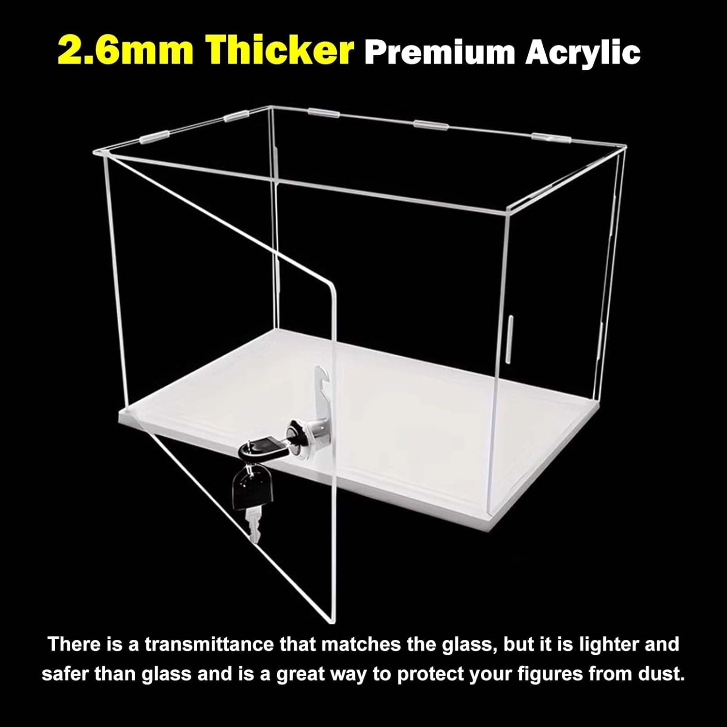 【Scatola espositiva in acrilico trasparente】 Realizzata in acrilico di alta qualità, la copertura antipolvere offre una visione chiara a 360°. La vetrina in acrilico è più leggera e più sicura del vetro. Mantenere la raccolta priva di polvere, ridurre la luce solare e i raggi ultravioletti e ridurre il rischio di danni al contenuto. 【Adatto a vari oggetti da collezione】 La nostra vetrina in acrilico protegge e mette in mostra figurine, modelli, case in miniatura, premi, bambole, giocattoli, automobili, gioielli, oggetti da collezione, palle da baseball, ricordi di nozze, fiori e altro ancora. Perfetto da esporre in soggiorno, ufficio, negozio al dettaglio, ecc. 【Assemblaggio facile e veloce】 Con il design a scatto, i contenitori trasparenti sono molto facili da montare senza colla. Puoi costruire tu stesso una scatola di plastica in 5 minuti. La scatola trasparente è dotata di serratura di sicurezza e chiave per tenere al sicuro la tua amata collezione. 【Pellicola protettiva antigraffio】La pellicola a doppio strato sui pannelli acrilici previene i graffi durante il trasporto. Tieni presente che è necessario rimuovere la pellicola protettiva prima dell'installazione. 【Come scegliere la taglia】 Misura prima la lunghezza, la larghezza e l'altezza della tua collezione e aggiungi almeno 3-5 cm (1-2 pollici) a questa cifra quando scegli una vetrina