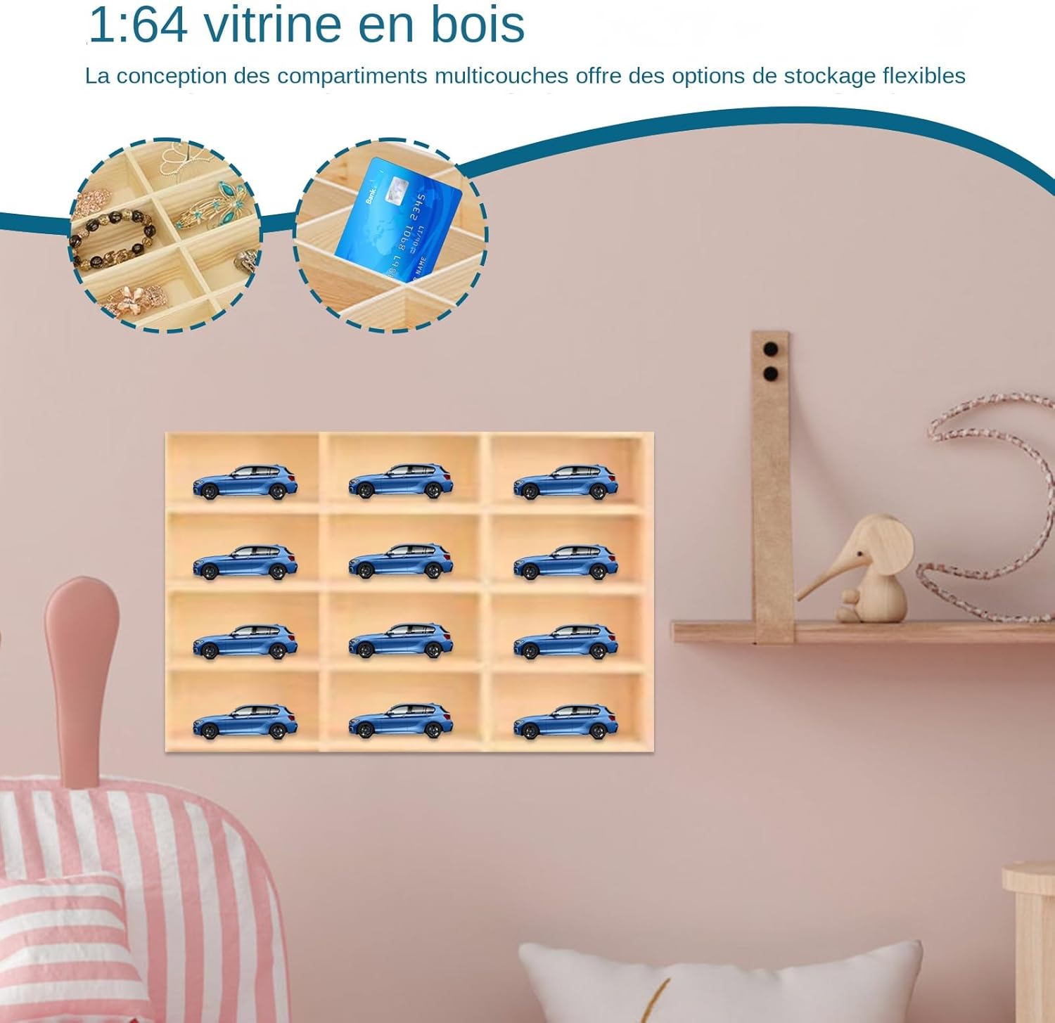 Stabilità modulare: elimina il rischio di ribaltamento grazie alle partizioni regolabili indipendenti. Offre un supporto fermo e una temporizzazione millimetrata per adattarsi perfettamente ai formati di modelli di auto ridotti. Visualizzazione funzionale decorativa: Strutturate la vostra vetrina da collezione con accesso rapido e disposizione chiara, perfetta per decorare la camera da letto o il soggiorno ottimizzando l'ordine. Fissaggio sicuro: aderisce saldamente alle superfici senza foratura, dotato di clip di posizionamento ausiliarie per una facile installazione e completando elegantemente gli stili di decorazione della casa. Finitura liscia durevole: materiale legno naturale che offre un'eccellente resistenza alle deformazioni. La costruzione stabile con superfici lucide garantisce prestazioni durature per proteggere e valorizzare le vostre auto in miniatura. Archiviazione modulare: Armadietti accuratamente progettati con soluzioni scalabili per varie collezioni, concentrandosi sulla disposizione metodica e sulla corretta gestione dello spazio dei modelli automobilistici.