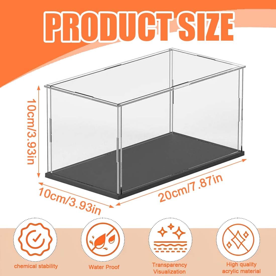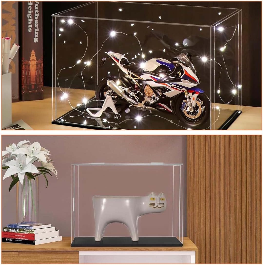 Dimensioni: 20 * 10 * 10 cm, vetrina per collezione in acrilico. Si prega di rimuovere la pellicola protettiva da entrambi i lati di ciascuna lastra acrilica prima dell'installazione. Protezione: la robusta vetrina impedisce alla polvere di entrare e danneggiare i tuoi oggetti da collezione. Proteggi e mostra le tue collezioni preferite come personaggi, modelli e altro ancora FACILE DA ASSEMBLARE: l'imballaggio leggero e ultrasottile garantisce il divertimento dell'attività fai-da-te facile da montare, rendendolo un regalo unico e speciale per i tuoi amici o familiari. Materiale: realizzato in materiale acrilico trasparente, può visualizzare perfettamente il tuo modello a 360 gradi. Perfetto per riporre una varietà di oggetti come cimeli sportivi, giocattoli, figurine, bambole, action figure, cimeli, modellini, modellini di automobili, bouquet da sposa, sculture e altro ancora. Non è solo un regalo perfetto per gli amanti dei modelli, ma anche un regalo speciale per la famiglia e gli amici