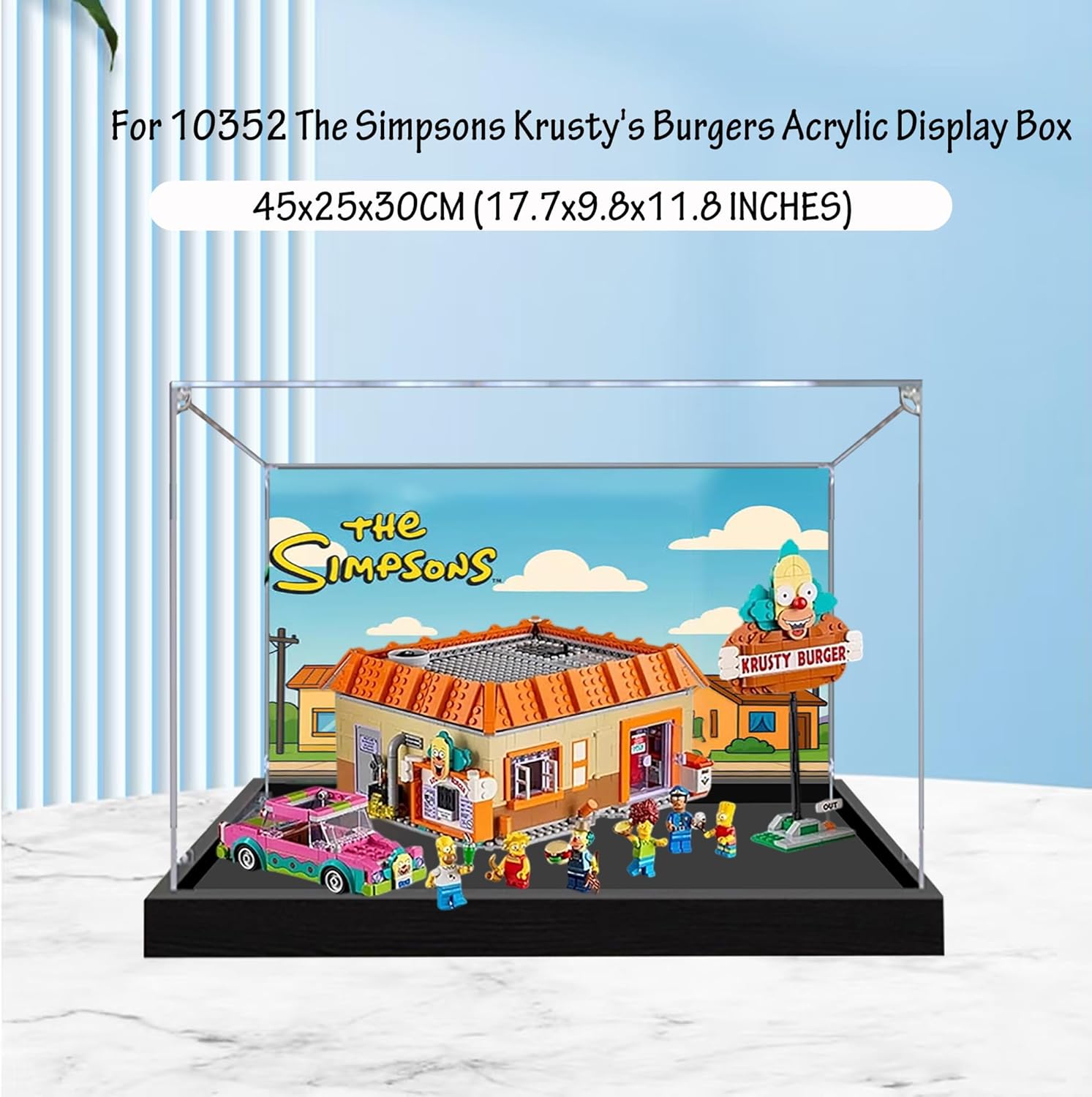 【Materiale acrilico altamente trasparente】 Vetrina in acrilico per Lego 10352 The Simpsons Krustys Burgers Only Vetrina Realizzata in acrilico trasparente di alta qualità con eccellente resistenza agli urti ed elevata trasparenza, questa vetrina offre un'eccellente protezione per la tua collezione da polvere, umidità e danni garantendo allo stesso tempo un perfetto montaggio facile e veloce: con un design modulare, la vetrina può essere assemblata in pochi minuti senza attrezzi. È facile da usare, garantisce che la scatola rimanga intatta e, se necessario, può essere smontata per la pulizia. Design moderno e minimalista: il design elegante e moderno e il materiale trasparente creano uno straordinario effetto visivo che si adatta perfettamente a qualsiasi arredamento. Perfetto per la casa, l'ufficio o il lavoro, migliora la bellezza generale di qualsiasi stanza. Resistente alla polvere e all'umidità: questa scatola espositiva protegge i tuoi oggetti da polvere, umidità e impronte digitali, mantenendo l'integrità dei tuoi oggetti da collezione o dei modelli LEGO 10352 per protezione e pulizia a lungo termine. Design versatile e impilabile: le scatole espositive sono impilabili e regolabili per ospitare oggetti da collezione di varie dimensioni e forme. Combina più scatole per massimizzare lo spazio e creare un display personalizzato