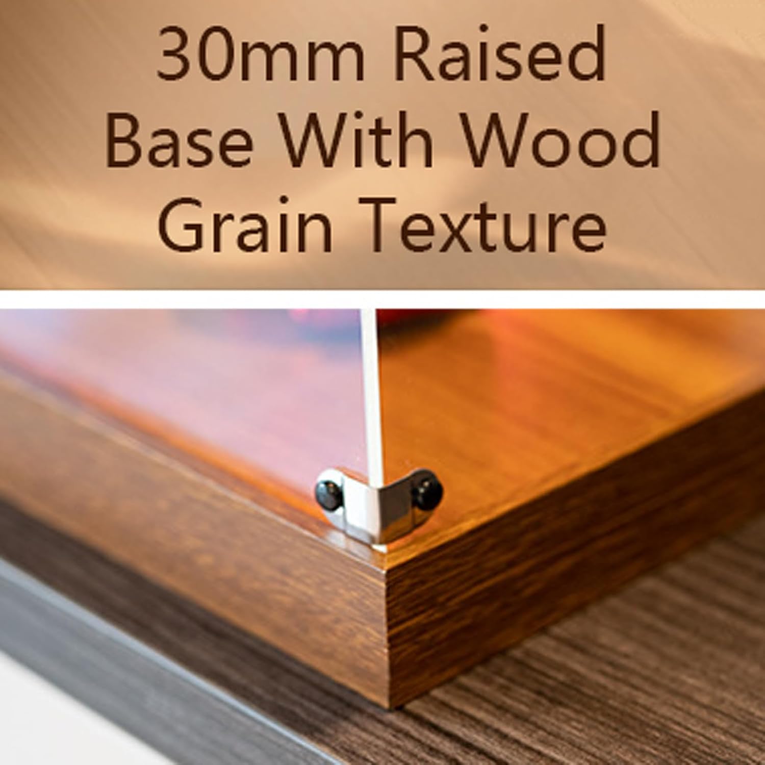 1. Design antigraffio: la vetrina in acrilico presenta angoli in metallo antigraffio e una base integrata con bordo in lega di alluminio. Gli angoli arrotondati proteggono dai graffi. 2. Materiale: la vetrina acrilica è realizzata in acrilico addensato con un pannello trasparente ad alta definizione, resistente all'ingiallimento e più trasparente del vetro. 3. Base: la vetrina in acrilico presenta una base rialzata di 30 mm con bordo in alluminio e venature del legno per un aspetto stabile e portante. 4. Design antipolvere: il design antipolvere della vetrina in acrilico protegge gli oggetti da collezione dalla polvere e garantisce una presentazione ordinata e chiara. 5. Applicazioni: le vetrine in acrilico sono adatte per esporre una varietà di oggetti da collezione, modelli, giocattoli, gioielli, medaglie e molto altro. Sono adatti anche per negozi, mostre e molti altri spazi.