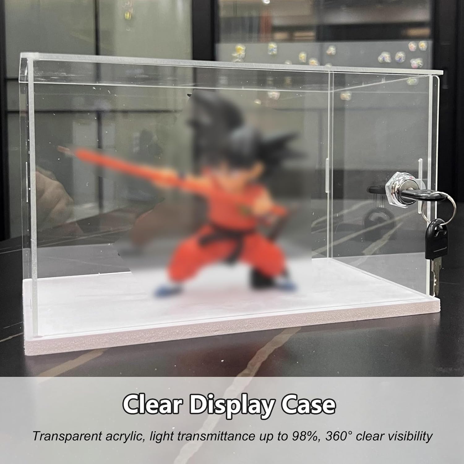 【Scatola espositiva in acrilico trasparente】: realizzata in acrilico di alta qualità, la copertura antipolvere offre una visione chiara a 360°. La vetrina in acrilico è più leggera e più sicura del vetro. Mantieni la collezione priva di polvere, riduci la luce solare e i raggi ultravioletti e riduci il rischio di danni al contenuto.,Adatto a vari oggetti da collezione: la nostra vetrina in acrilico protegge e mette in mostra figurine, modelli, case in miniatura, premi, bambole, giocattoli, automobili, gioielli, oggetti da collezione, palle da baseball, ricordi di nozze, fiori e altro ancora. Perfetto da esporre in soggiorno, ufficio, negozio al dettaglio, ecc. 【Assemblaggio facile e veloce】: con il design a scatto, i contenitori trasparenti sono molto facili da montare senza colla. Puoi costruire tu stesso una scatola di plastica in 5 minuti. La scatola trasparente è dotata di serratura di sicurezza e chiave per tenere al sicuro la tua amata collezione. 【Pellicola protettiva antigraffio】: la pellicola a doppio strato sui pannelli acrilici previene i graffi durante il trasporto. Si prega di notare che è necessario rimuovere la pellicola protettiva prima dell'installazione. 【Come scegliere la dimensione】: misurare prima la lunghezza, la larghezza e l'altezza della collezione e aggiungere almeno 3-5 cm (1-2 pollici) a questa cifra quando si sceglie una vetrina