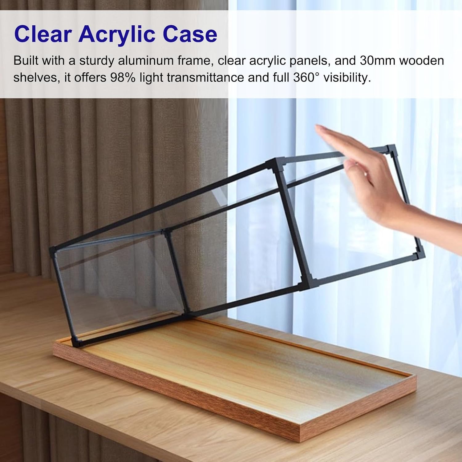 Vetrina per collezione Espositore in acrilico trasparente per oggetti da collezione, vetrina rettangolare trasparente con base in legno, scatola di immagazzinaggio antipolvere (20x20x20 cm (8x8x8 pollici))
