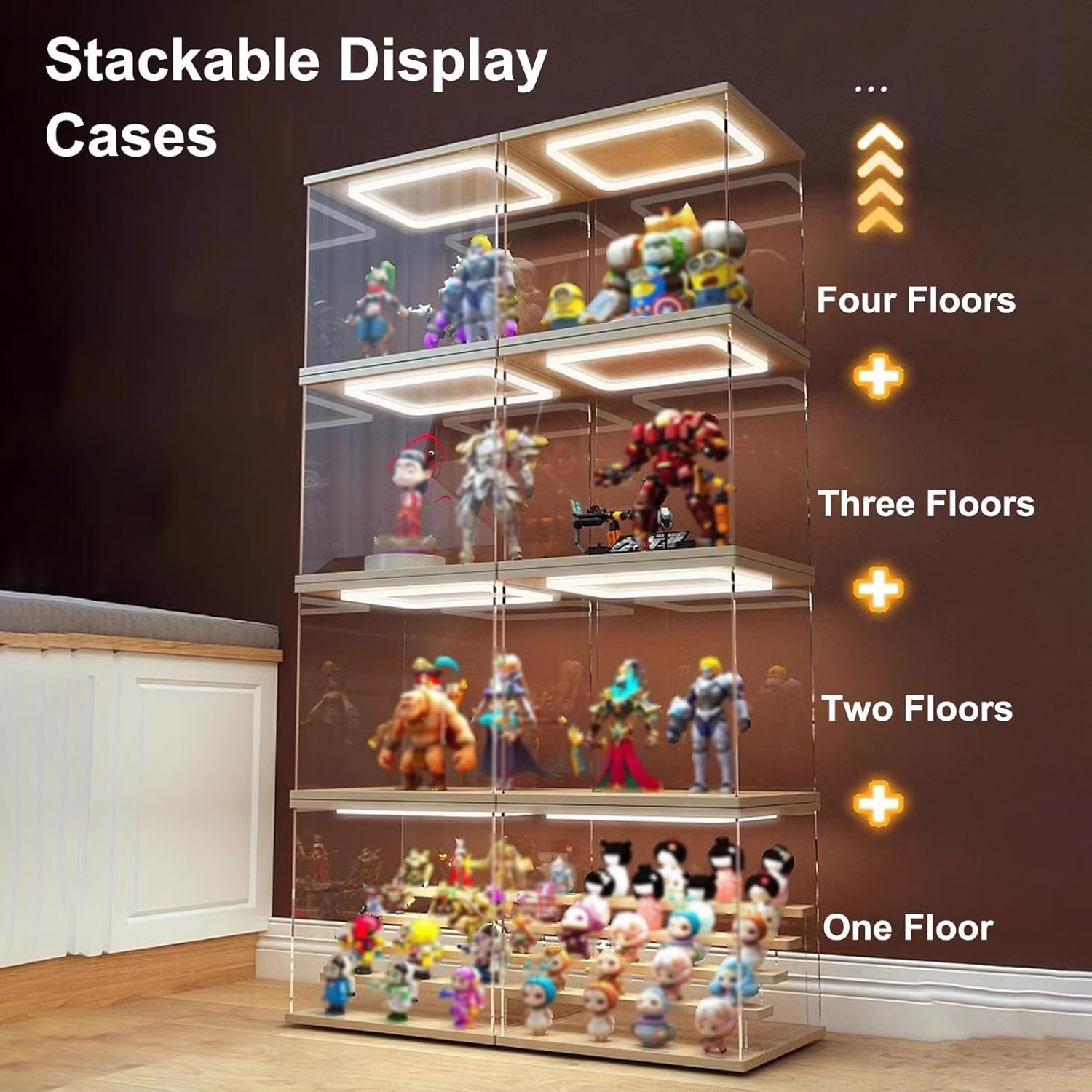 Vetrina per collezione Piccola vetrina in acrilico con illuminazione a LED, quadrata e rettangolare, espositore per figurine, modellini di automobili, scatola di presentazione in acrilico trasparente(2