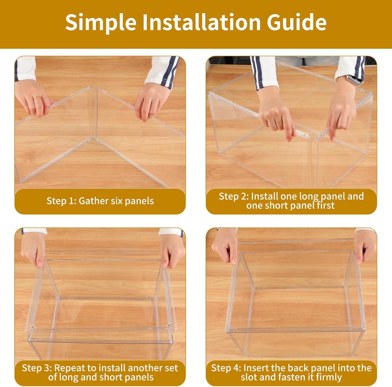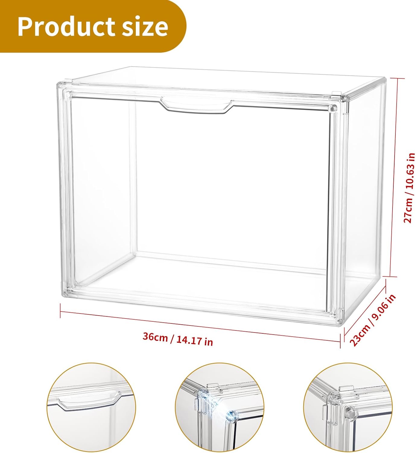 Acrilico robusto e dimensioni pratiche: la vetrina da 36x27x23 cm realizzata in acrilico infrangibile offre una protezione stabile per oggetti di valore. Controllare le dimensioni per una vestibilità ottimale. Protezione efficace dalla polvere: grazie alla struttura chiusa e alla porta magnetica impermeabile, gli oggetti da collezione rimangono protetti e privi di polvere a lungo termine. Chiusura magnetica con maniglia - Un pratico meccanismo magnetico consente l'apertura/chiusura con una sola mano e protegge il contenuto in modo affidabile. Impilabile e salvaspazio: grazie al design impilabile è possibile impilare più scatole in modo stabile, ideale per spazi limitati. Multifunzionale e facile da montare: montaggio rapido senza attrezzi per oggetti da collezione, borse, scarpe, libri o puzzle 3D. Nessun assemblaggio complicato.