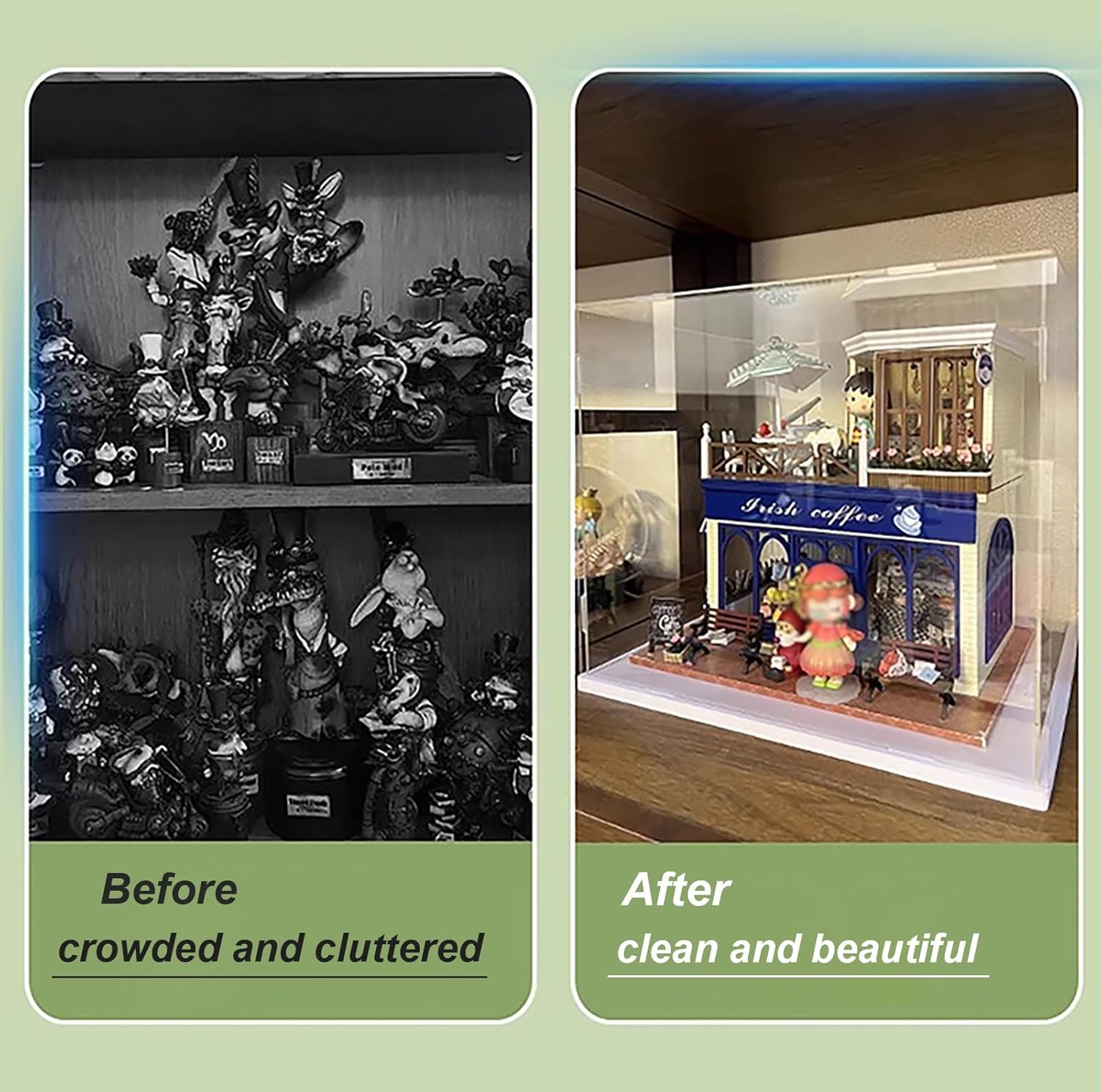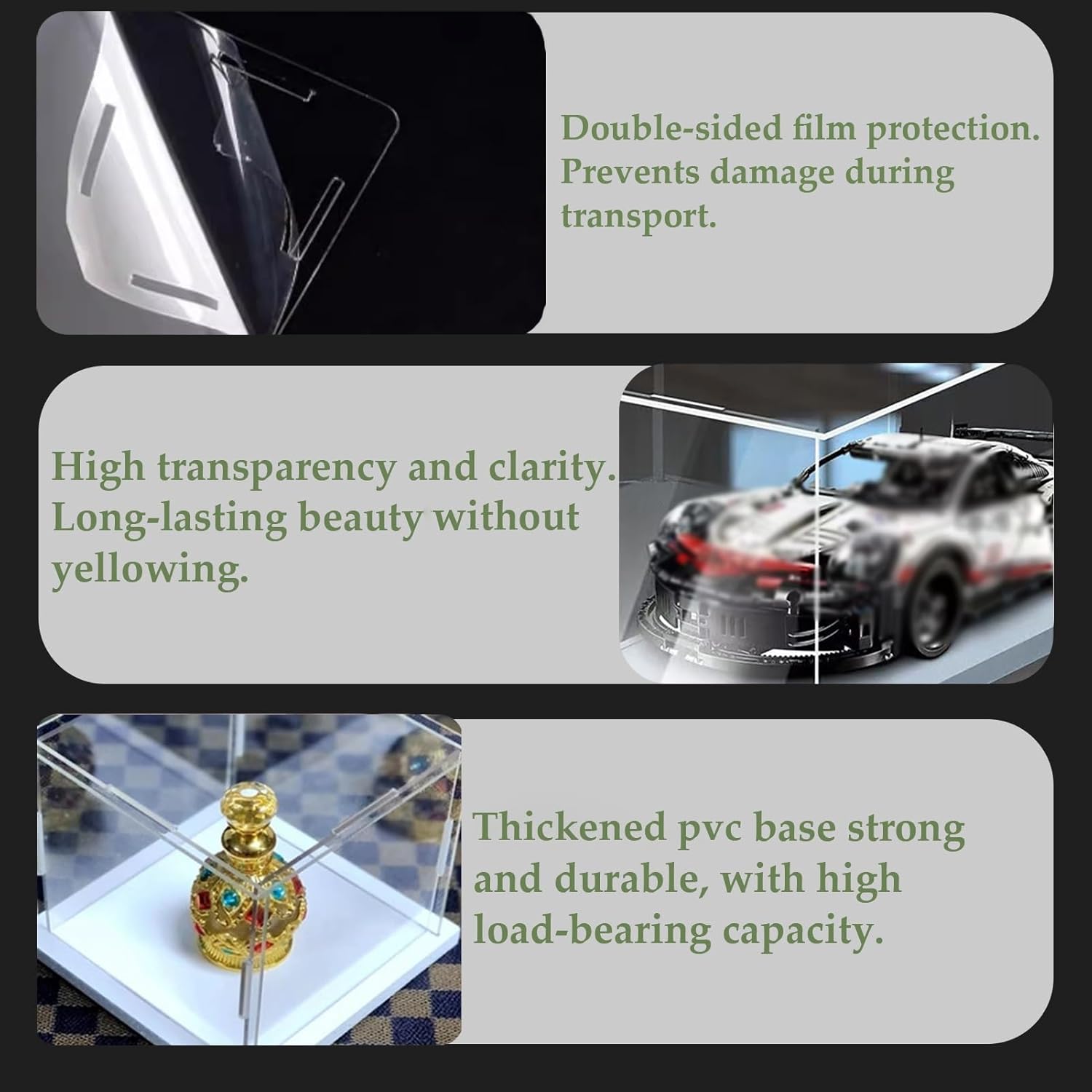 【Antipolvere e display】 Le nostre scatole trasparenti mostrano chiaramente i tuoi oggetti da collezione da tutte le direzioni. Allo stesso tempo, fornisce anche una protezione completa contro polvere e raggi ultravioletti per prevenire danni agli oggetti, è il modo migliore per proteggere le tue collezioni. 【Custodia in acrilico trasparente】 Questo contenitore trasparente è realizzato in acrilico spesso di alta qualità, con elevata trasmittanza, non facilmente deformabile, facile da pulire, bordi lisci e lucidati, la base è in PVC bianco, che lo rende visivamente più accattivante. trofei, cosmetici, statue, sculture, forniture per ufficio, ecc. Può anche essere un fantastico regalo di Natale, vacanze, compleanno per i tuoi amici.,Varie dimensioni disponibili: la vetrina è disponibile in una varietà di dimensioni, rendendola perfetta per qualsiasi oggetto da collezione che desideri esporre. NOTA: misurare la lunghezza, la larghezza e l'altezza della collezione prima di ordinare, quindi ordinare in base alle dimensioni necessarie.,Facile da montare: design dell'assemblaggio dello slot per schede, strappare la pellicola protettiva dalla custodia acrilica prima dell'installazione, assemblato dal basso senza attrezzi. Nota: una volta completata l'installazione, se il pannello inferiore viene rinforzato con colla, la scatola sarà più stabile (la colla non è inclusa)