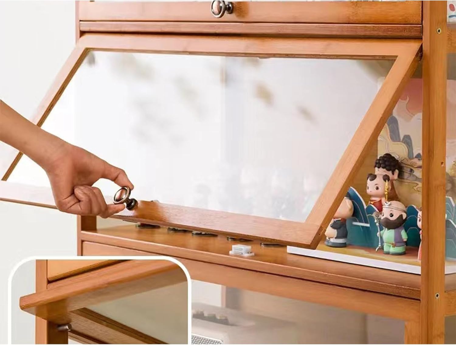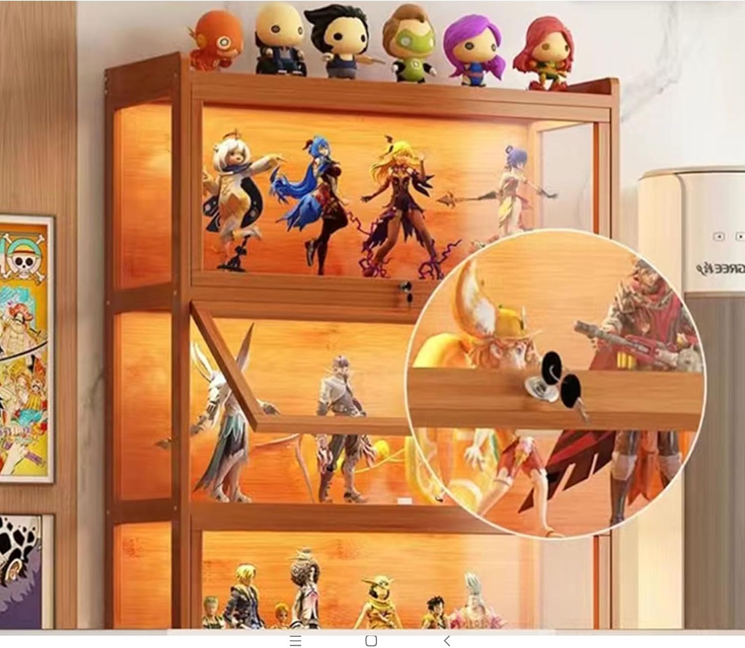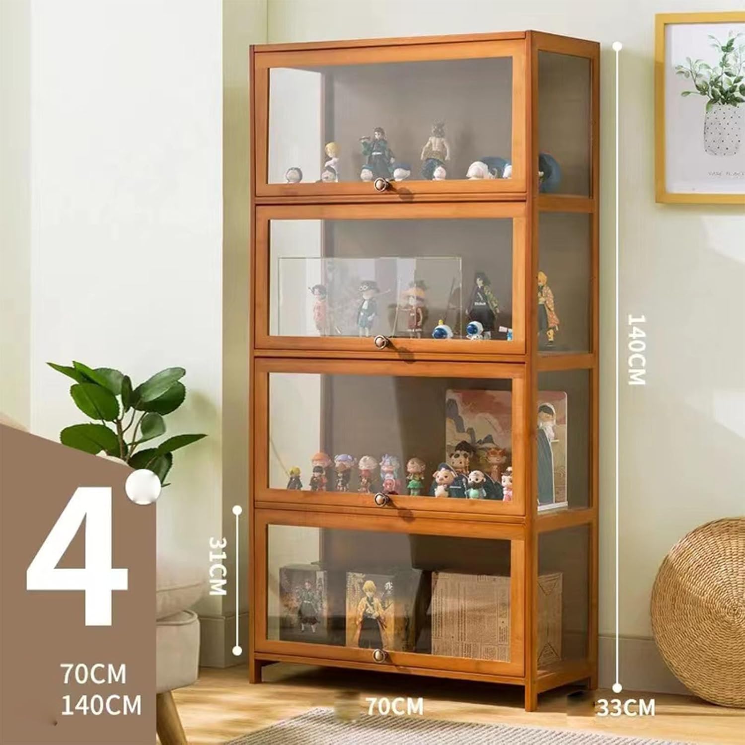 Materiale del prodotto: il telaio complessivo è realizzato in bambù naturale, sano e naturale. Protezione contro polvere e cadute. Tutti e tre i lati della vetrina sono realizzati in materiale acrilico completamente trasparente, sicuro e durevole. Antipolvere: la vetrina finita è composta da cornice in acrilico e bambù, facile da pulire, resistente alla polvere, all'acqua e agli acidi, può conservare le tue figure a lungo. Design della porta dell'armadio: la porta dell'armadio antipolvere ribaltabile è appesa sulla parte superiore dell'anta dell'armadio, semitrasparente e antipolvere, trasparente su tre lati, bella e pratica. Installazione: la vetrina è facile da installare, anche le ragazze possono farlo in modo indipendente, ci sono disegni, i fori per le viti sono tutti praticati in anticipo, se ci sono problemi durante l'installazione, basta collegare le viti insieme. Ampia gamma di applicazioni: puoi impostare non solo personaggi diversi, ma anche lego, libri, decorazioni, statue, cornici per foto, ecc. Ideale per studio, soggiorno, camera da letto, ecc.