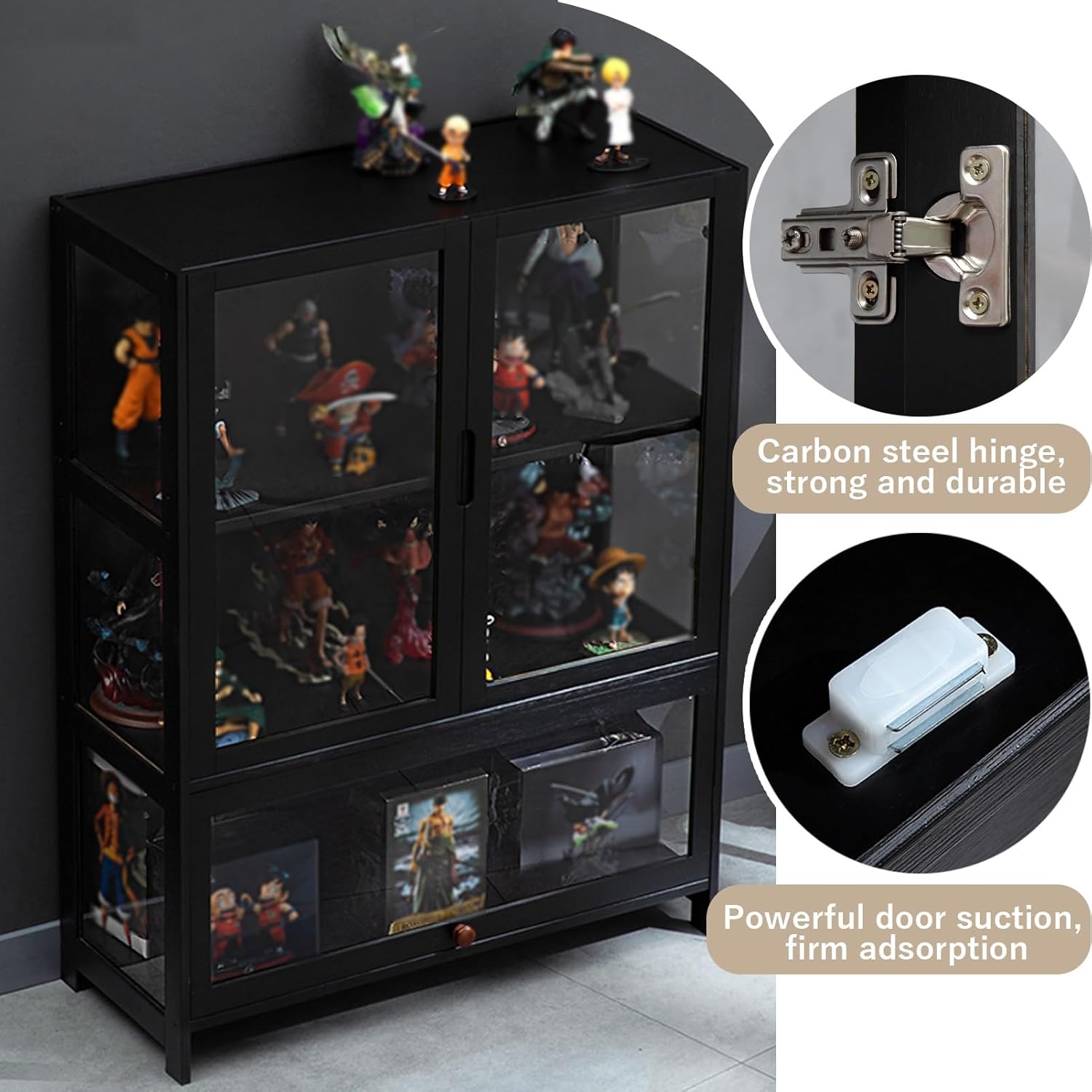 【Materiale di alta qualità】: il supporto per figurine è realizzato con anta in acrilico e struttura in bambù, la vetrina trasparente garantisce una visione chiara e senza ostacoli degli oggetti esposti all'interno e può essere utilizzata come armadietto antico per esporre la tua collezione di libri o oggetti squisiti. artigianato. 【Grande capacità di archiviazione】: le vetrine per curiosità hanno 3 strati, offrendo spazio sufficiente per esporre decorazioni, libri, file, documenti, curiosità, foto, collezioni, oggetti decorativi, giocattoli per bambini. 【Sigillatura resistente alla polvere】: il pannello posteriore laminato senza cuciture completamente sigillato e antipolvere previene polvere e gocce. Un design semplice e moderno mette in mostra la tua collezione e protegge dalla polvere. Ampia gamma di usi: queste vetrine possono essere utilizzate come libreria, ripiano portaoggetti, armadietto per giocattoli da collezione. Perfetto per il soggiorno, la camera da letto, la sala giochi, la cucina, l'asilo nido, l'ufficio o qualsiasi altro spazio. 【Facile da montare】: la libreria è facile da montare, tutto l'hardware e le istruzioni sono inclusi. Design a doppia porta, maniglia scanalata premurosa, più facile da aprire e chiudere.