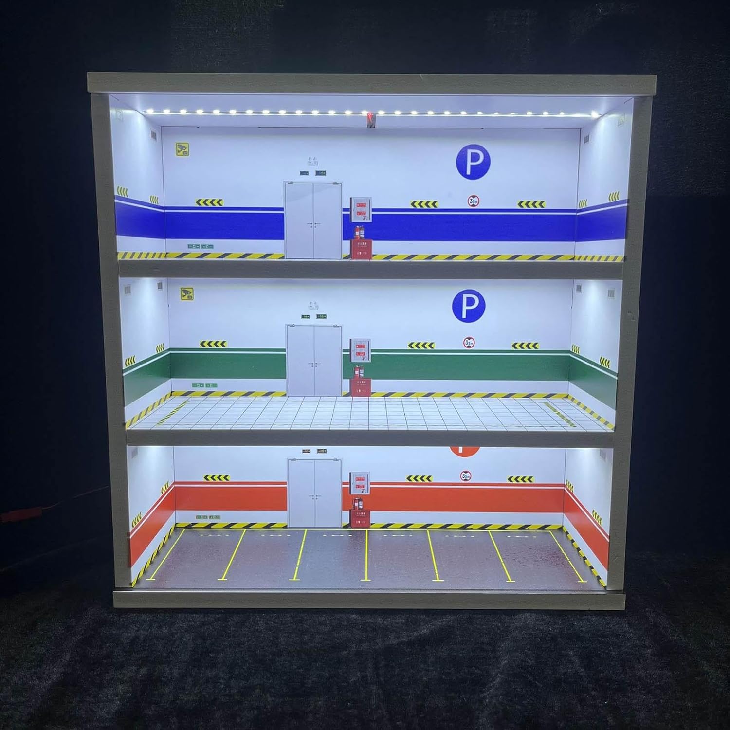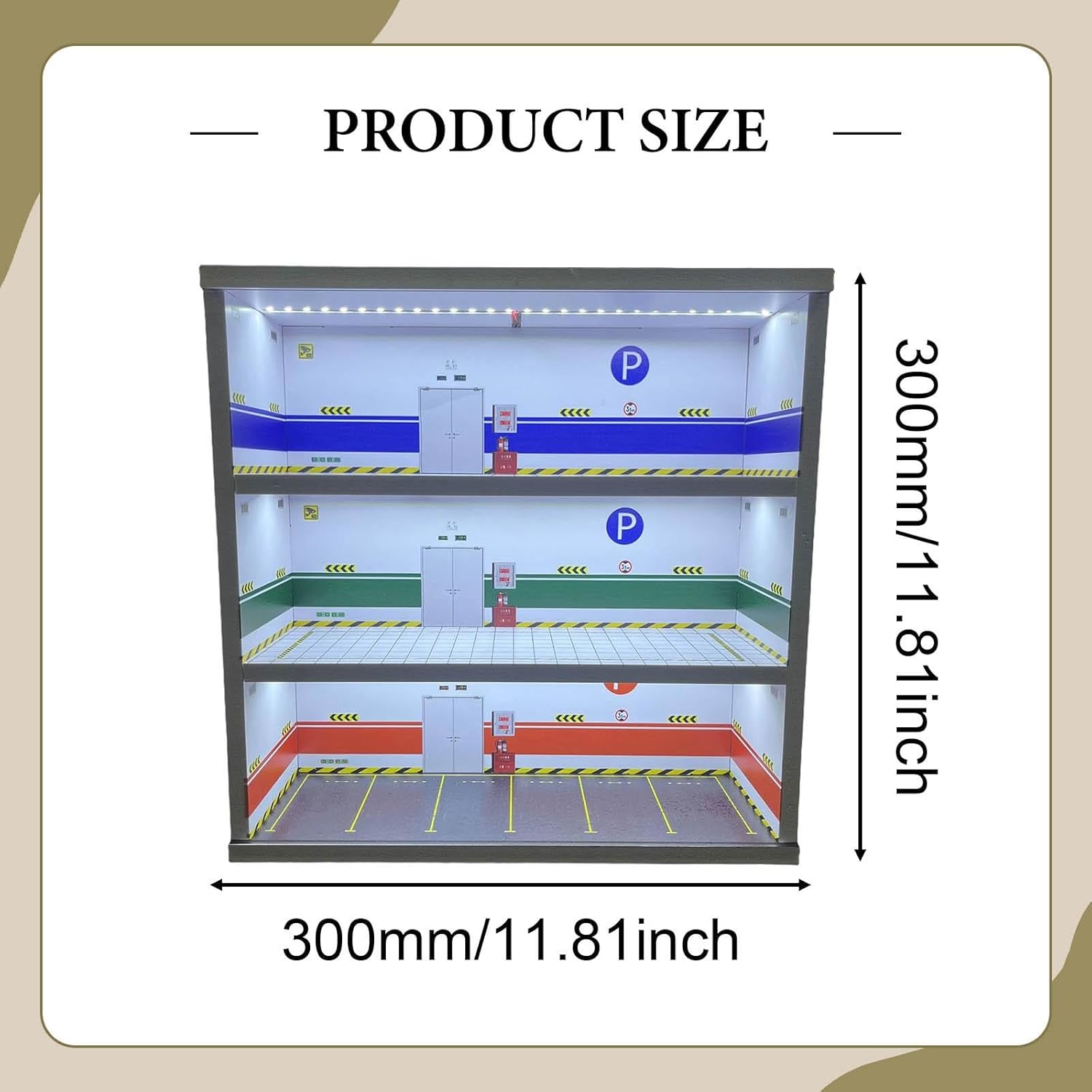 Vetrina per Modellini di Auto Contenitore per Auto Giocattolo Scena Parcheggio Realistica Espositore Antipolvere a Tre Ripiani Adatto per Esposizione, Style C
